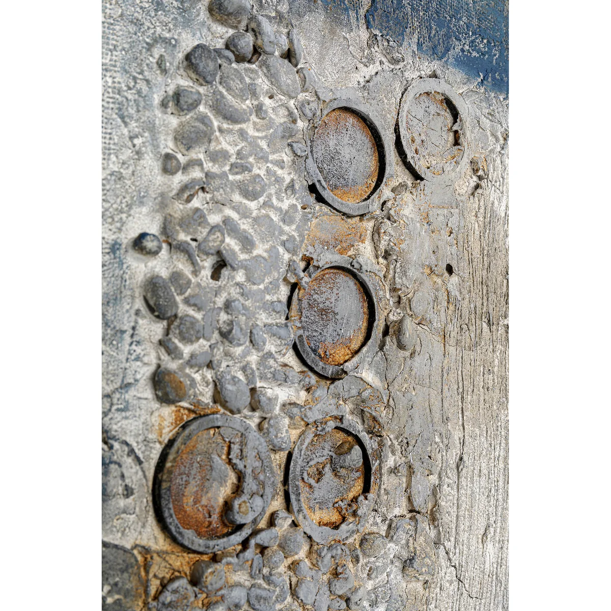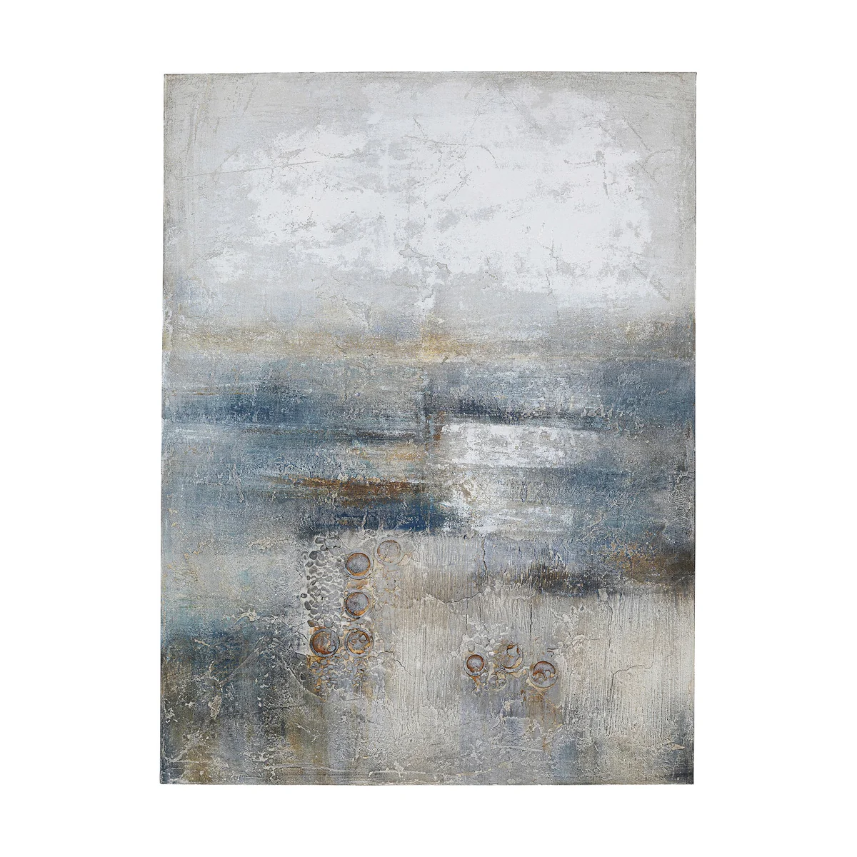 - The start to your gallery wall at home: a large, portrait-format picture in soft blue, grey and natural tones - Exquisite because it is hand-painted in acrylic with exciting structures and integrated applications - The work of art on canvas is mounted on a stretcher frame, which gives it a pure appearance - Decorative wall decoration, which looks very modern and fresh due to the abstract motif - If you have blue furniture, blue accessories or cushions in your living room, you will definitely free up pride of place above the sofa for the picture.