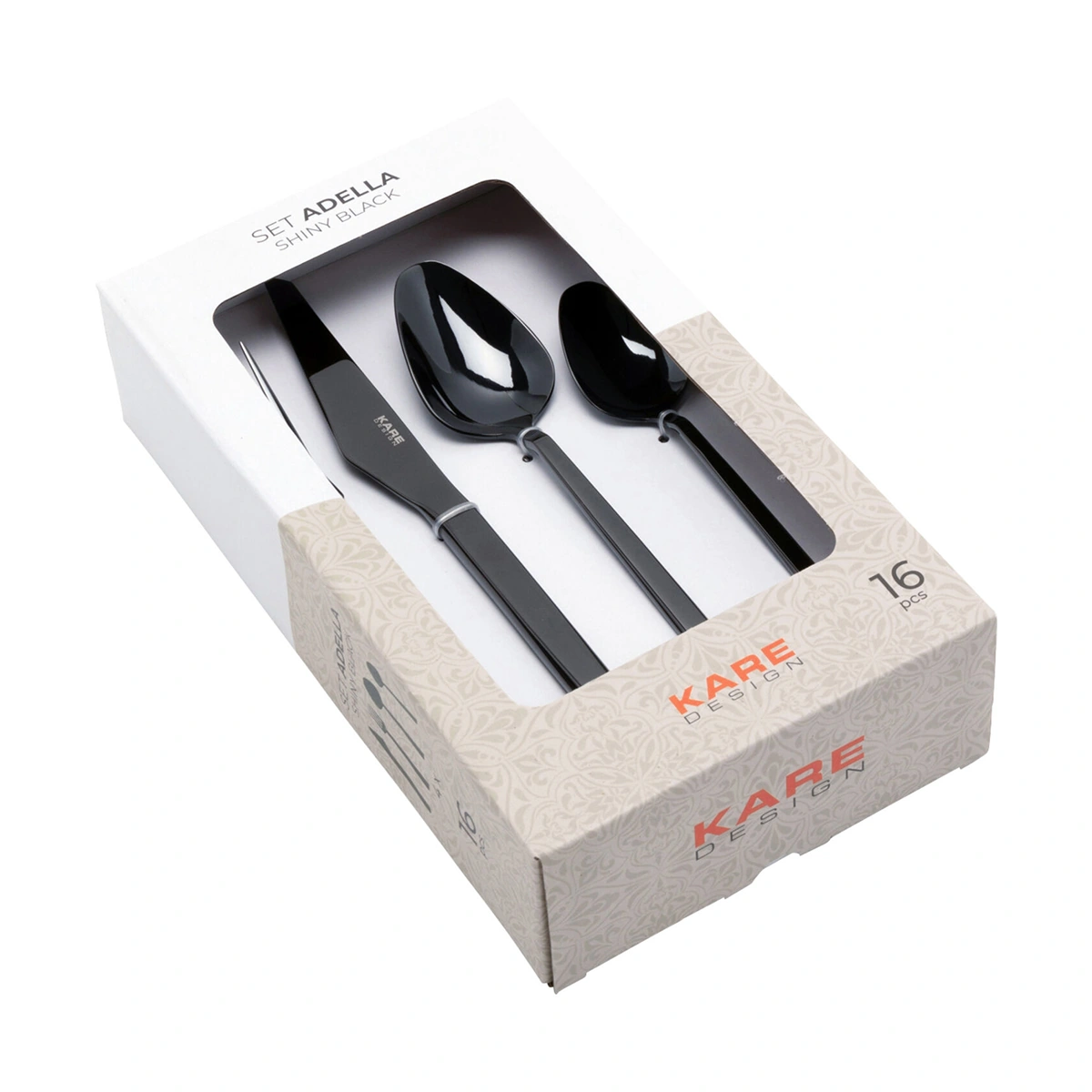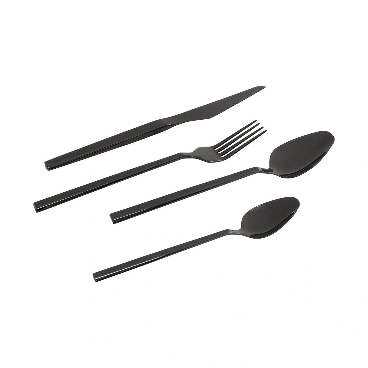 The Adella cutlery set in black introduces a bold modern touch to table settings with its shiny finish and contemporary appeal. Designed for stylish dining, this 16-piece set enhances both everyday meals and special gatherings. Crafted from polished stainless steel with titanium-coated detailing, the pieces ensure durability, strength, and resistance to wear while offering a comfortable grip and balanced feel.
