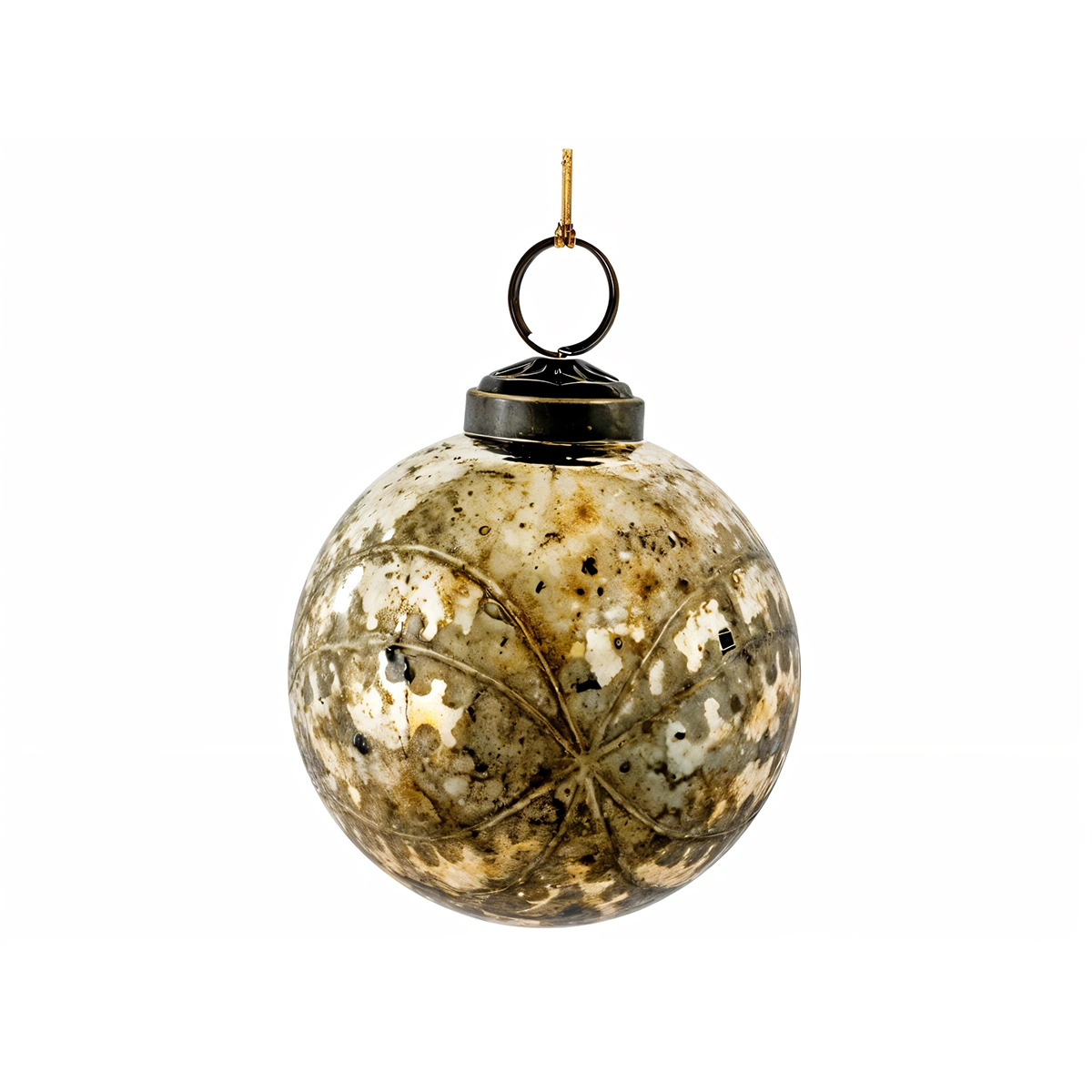 Small Aged Gold Engraved Glass Ball Ornament in Golden Glass