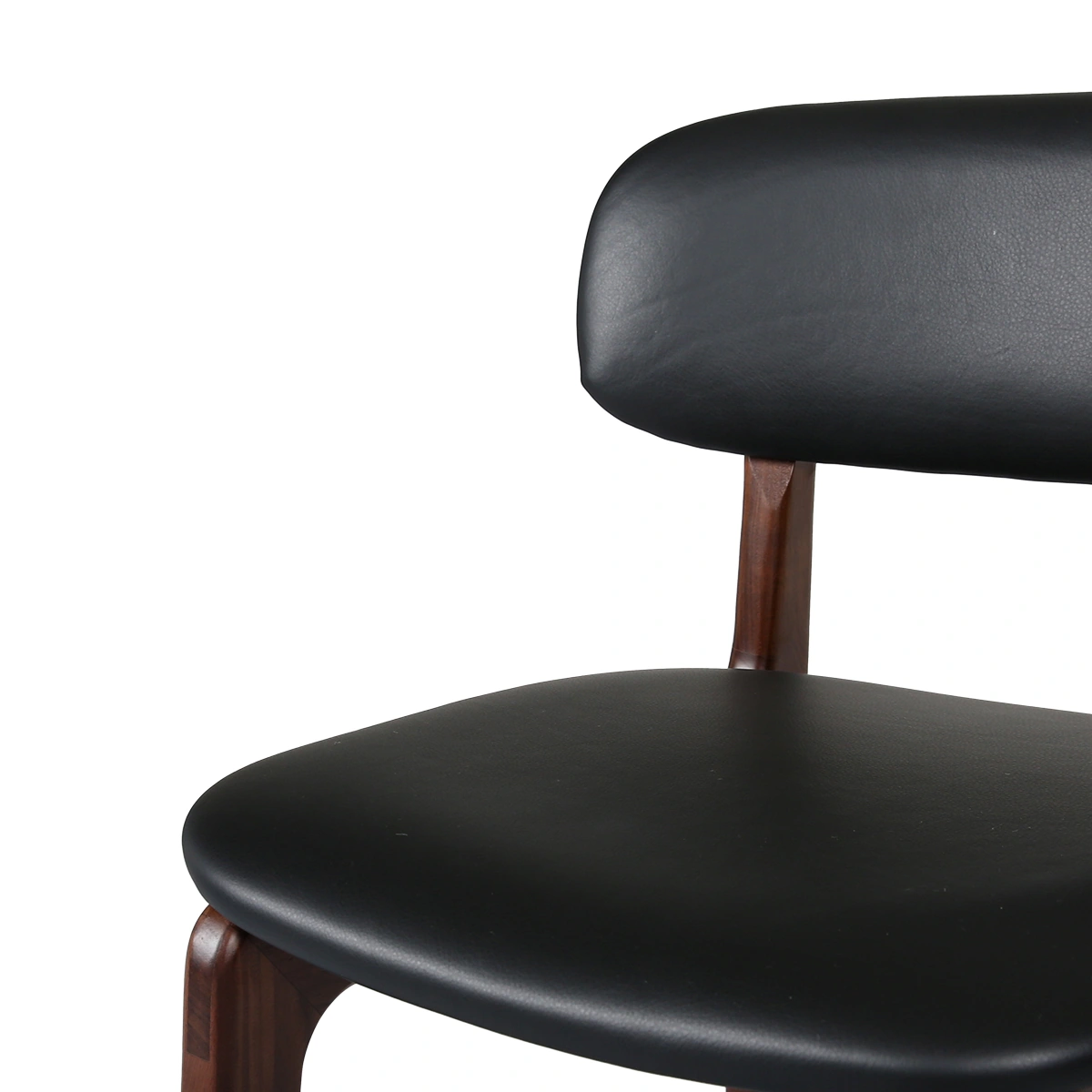 Seat and back in black semi aniline leather; Solid Walnut Legs