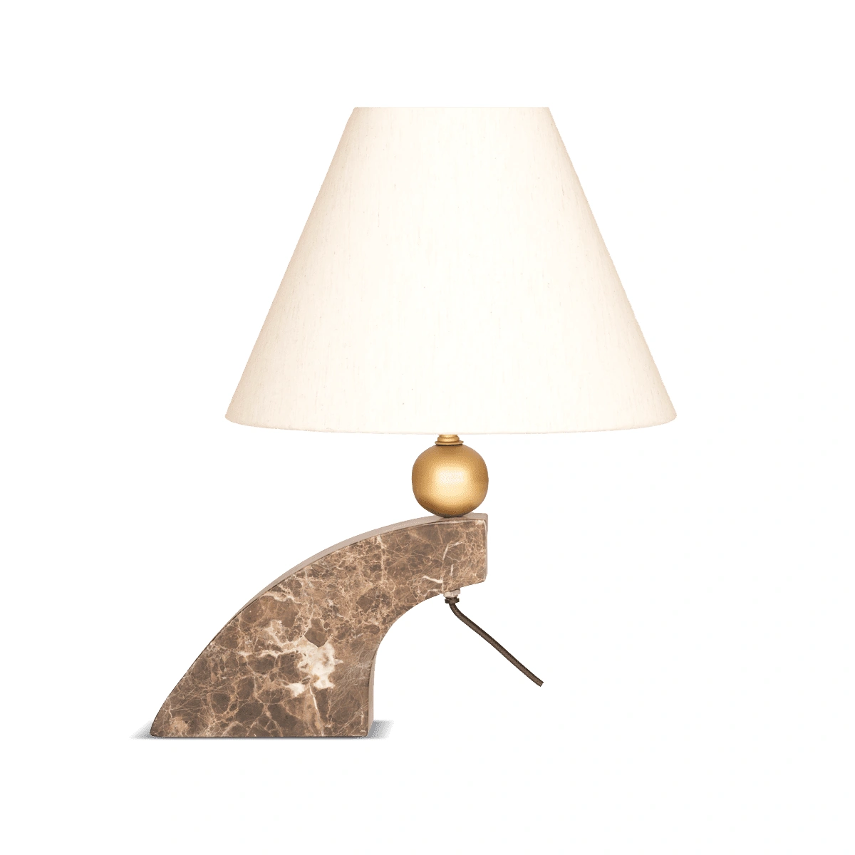 Introduce quiet elegance to your spaces with the Beige Alcove Table Lamp in Dark Emperador Marble and Gold Finish Steel. Uniquely designed, this lamp effortlessly blends functionality with style.