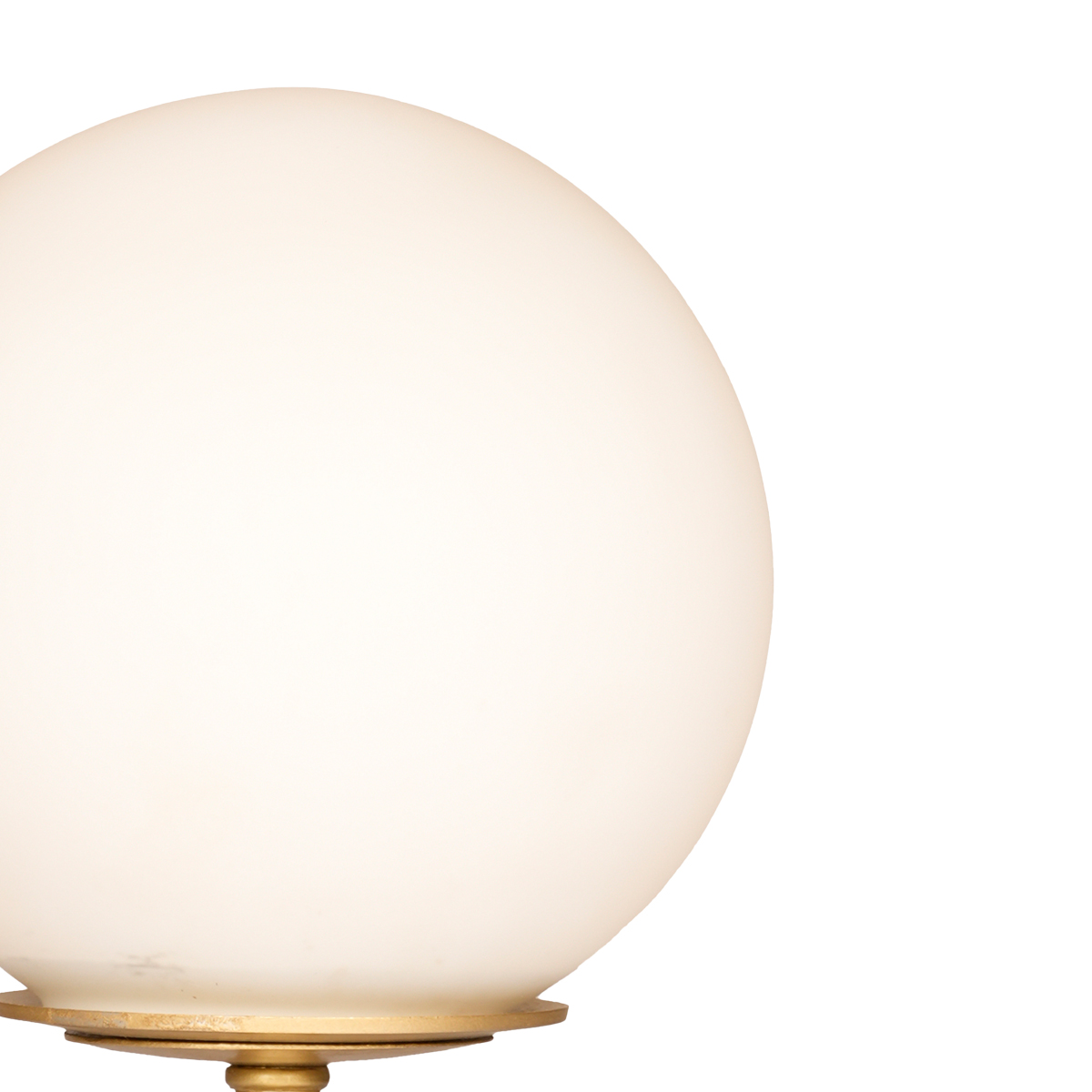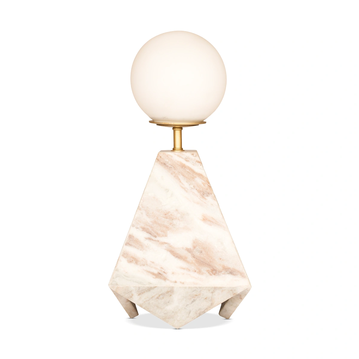 Base: Toronto Marble (Smooth Surface); Frame: Mild Steel (Gold Finish); Shade: Milky White Glass Ball (Soft Diffusion)