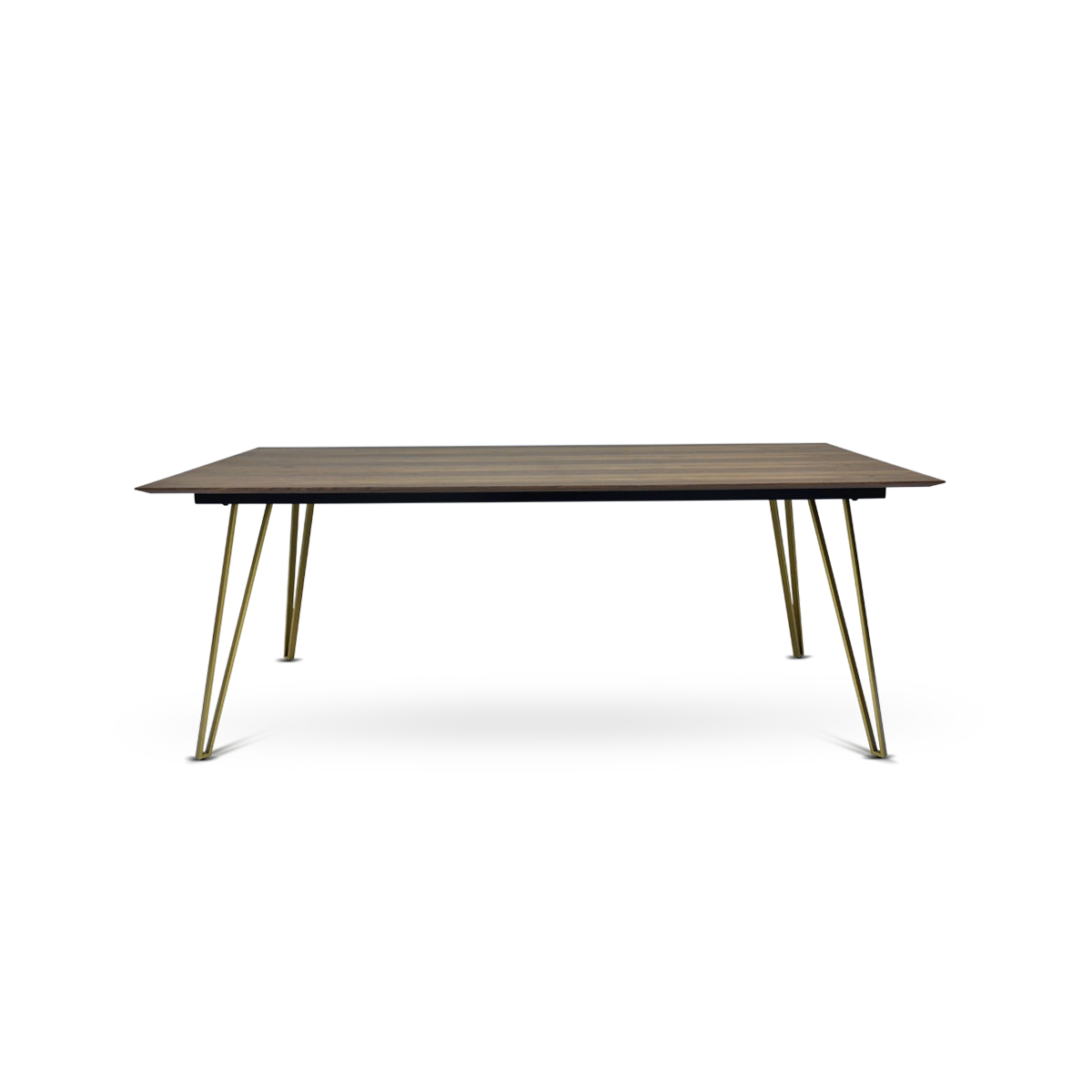 The Alicante Walnut Dining Table in rich walnut veneer brings timeless elegance to your dining room, instantly elevating any modern or contemporary dining space. Its rectangular design and luxurious brass accents make it a stylish centerpiece for gatherings and family dinners.