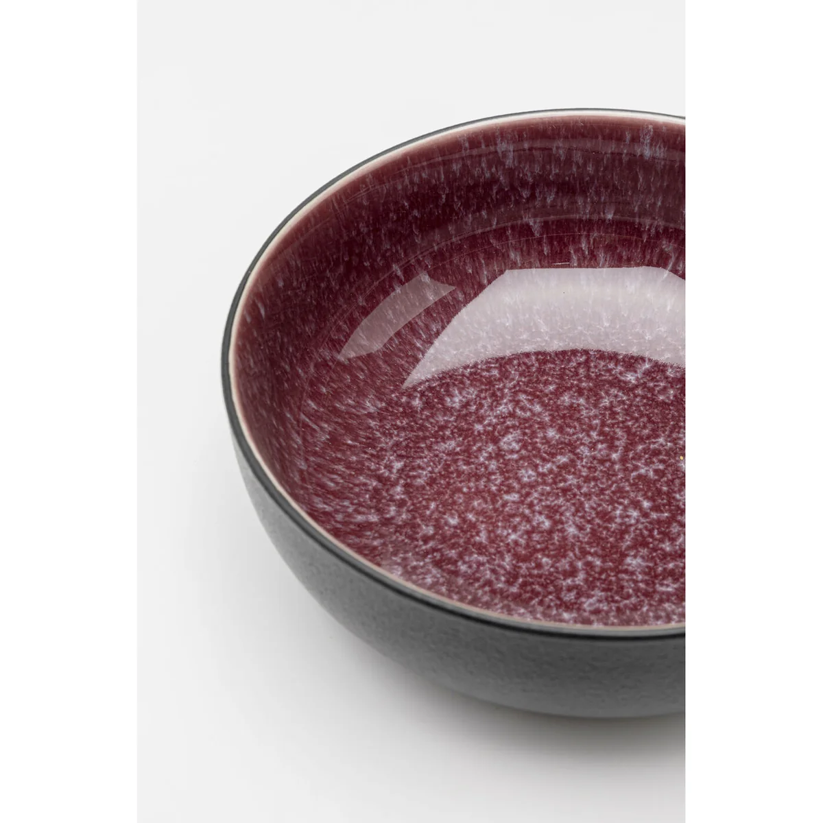 The Alissa Cereal Bowl in Multicoloured Stoneware brings an exquisite touch of individuality to every table setting. With its contrasting play of velvety dark red and delicate speckles, it creates a captivating aesthetic.