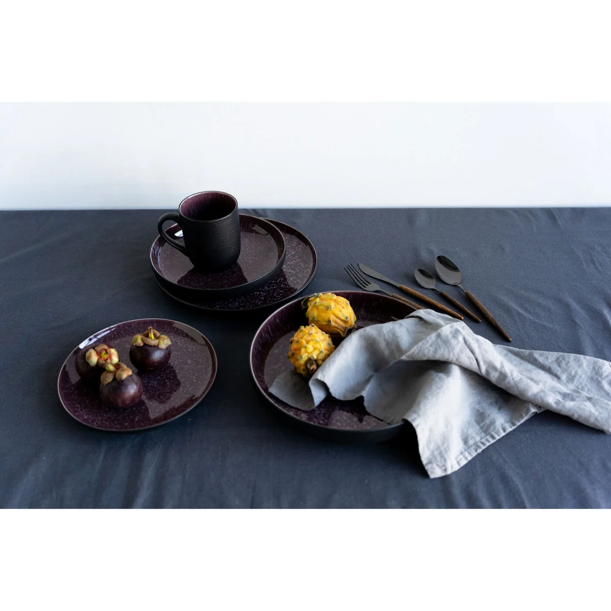 Adorn your dining table with the Alissa Large Plate, a multicolored stoneware glazed masterpiece. This plate's contrasting play of velvety dark red and delicate speckles exudes individuality and style.