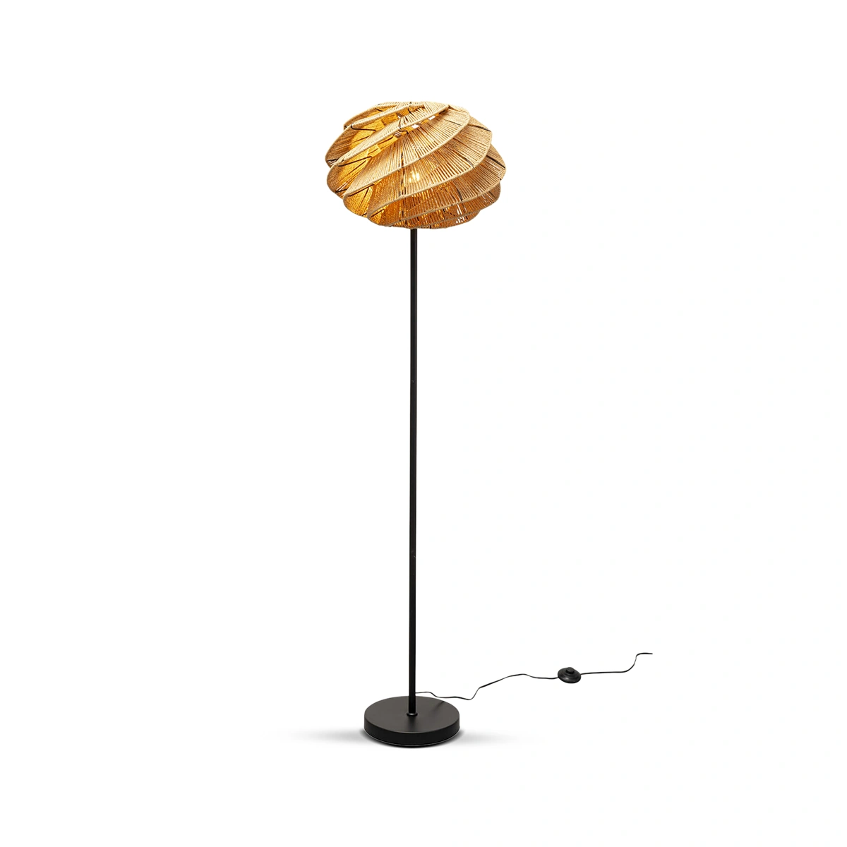 Invite a tropical vibe into your living space with the Aloha Whirl Floor Lamp in Brown Rattan. This elegant design emits a warm, cozy light, perfect for adding a relaxed atmosphere to modern or boho-inspired interiors.