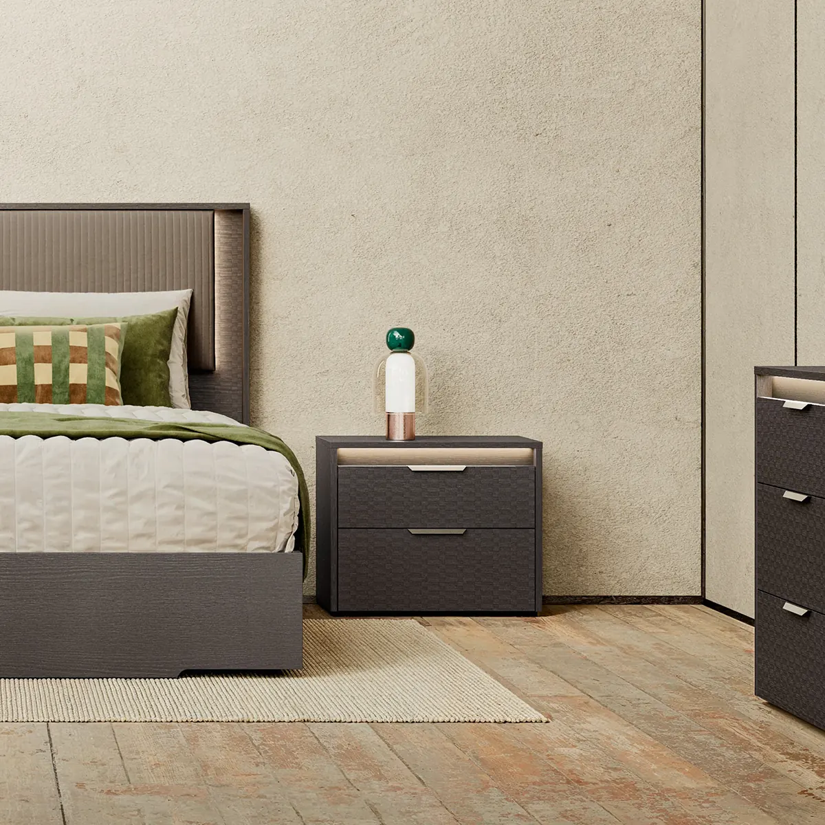 The Amy Nightstand in Eco Dark Oak is a sleek bedside companion designed to complement modern bedroom interiors. With its clean lines and compact form, this nightstand offers functional storage while maintaining a refined, contemporary aesthetic that suits a variety of bedroom styles. Crafted from durable melamine with a Tetris matte finish, the nightstand features a well-proportioned structure ideal for bedside essentials. Its smooth surface and solid construction ensure everyday reliability, while the Eco Dark Oak tone adds warmth and sophistication. Perfect for keeping nighttime necessities within reach, the Amy nightstand delivers both practicality and visual harmony. Its durable materials, easy maintenance, and minimalist design make it a versatile and lasting addition to any bedroom setup.