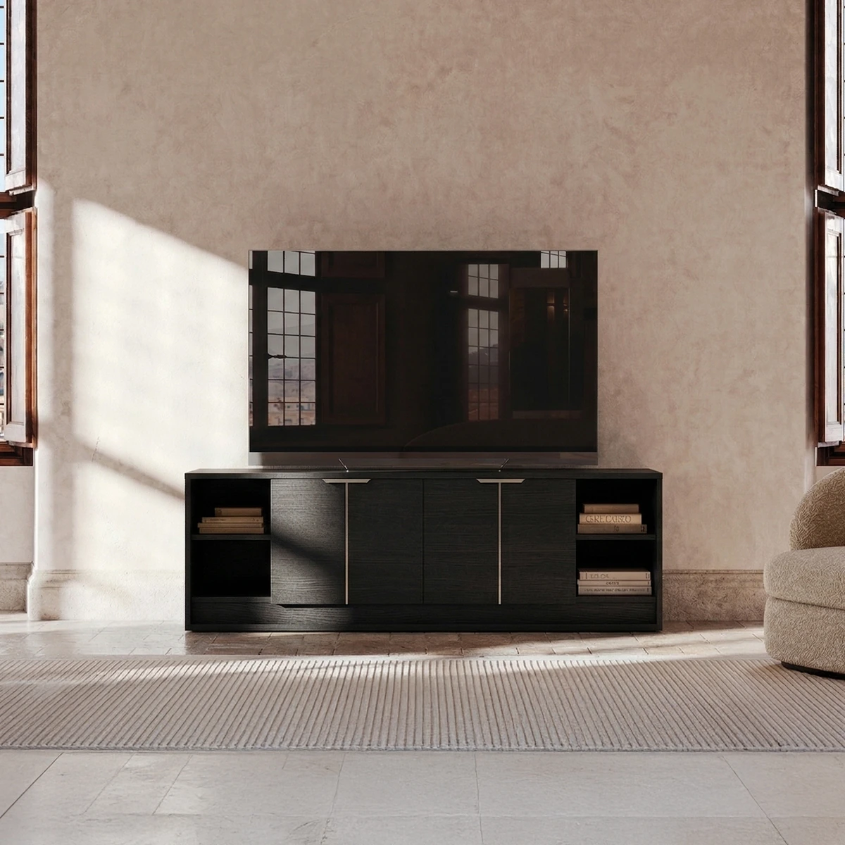 The Amy TV Base Structure in Eco Dark Oak is a contemporary media solution designed to support modern entertainment setups. With its clean design, it integrates seamlessly into living rooms focused on minimalism and function. Crafted from durable melamine with a Tetris matte finish, this TV base structure is compatible with firebox installations. Its sturdy build ensures stability while maintaining a streamlined appearance. This TV base offers both practicality and modern appeal. Firebox compatibility enhances versatility, while the refined finish ensures it complements a wide range of living room styles.