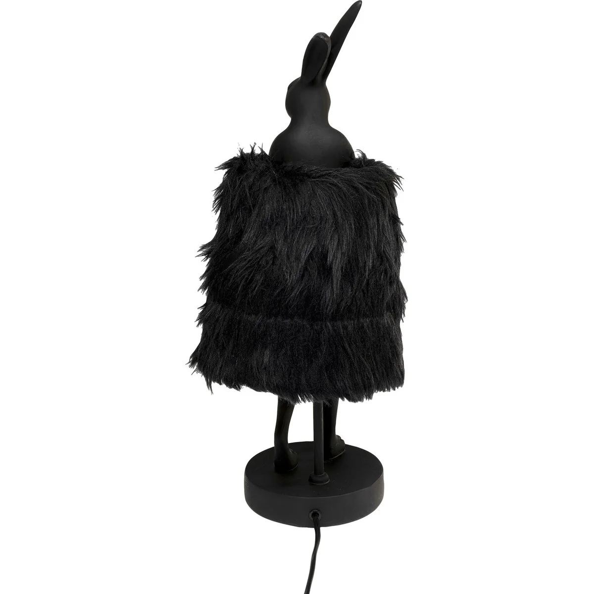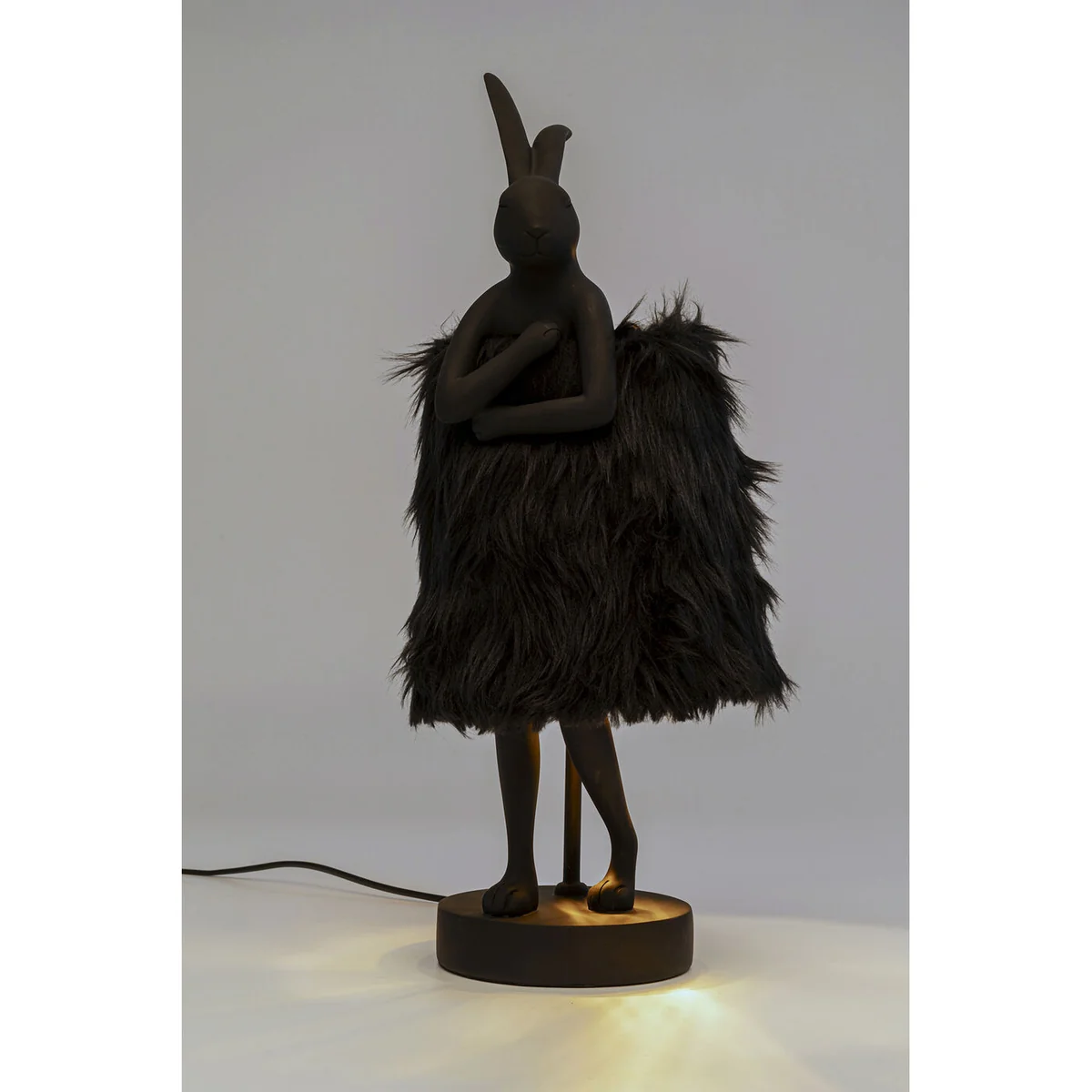 Black Faux Fur Rabbit Table Lamp in Polyresin