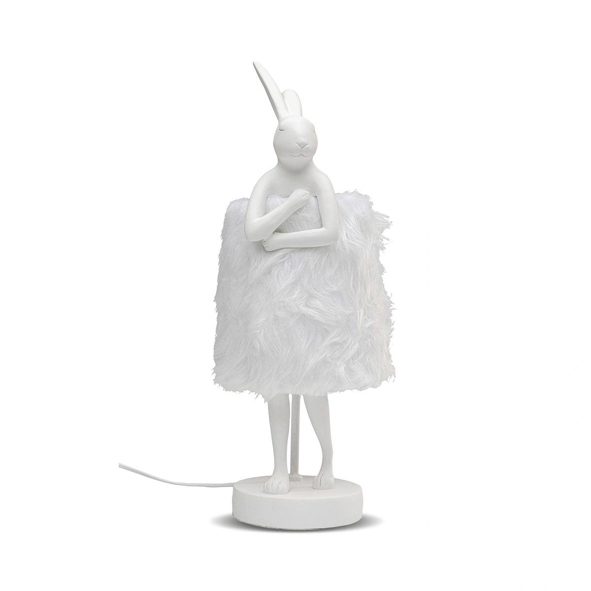 White Rabbit Fur Table Lamp in Polyresin and Faux Fur, 18x50x20 cm