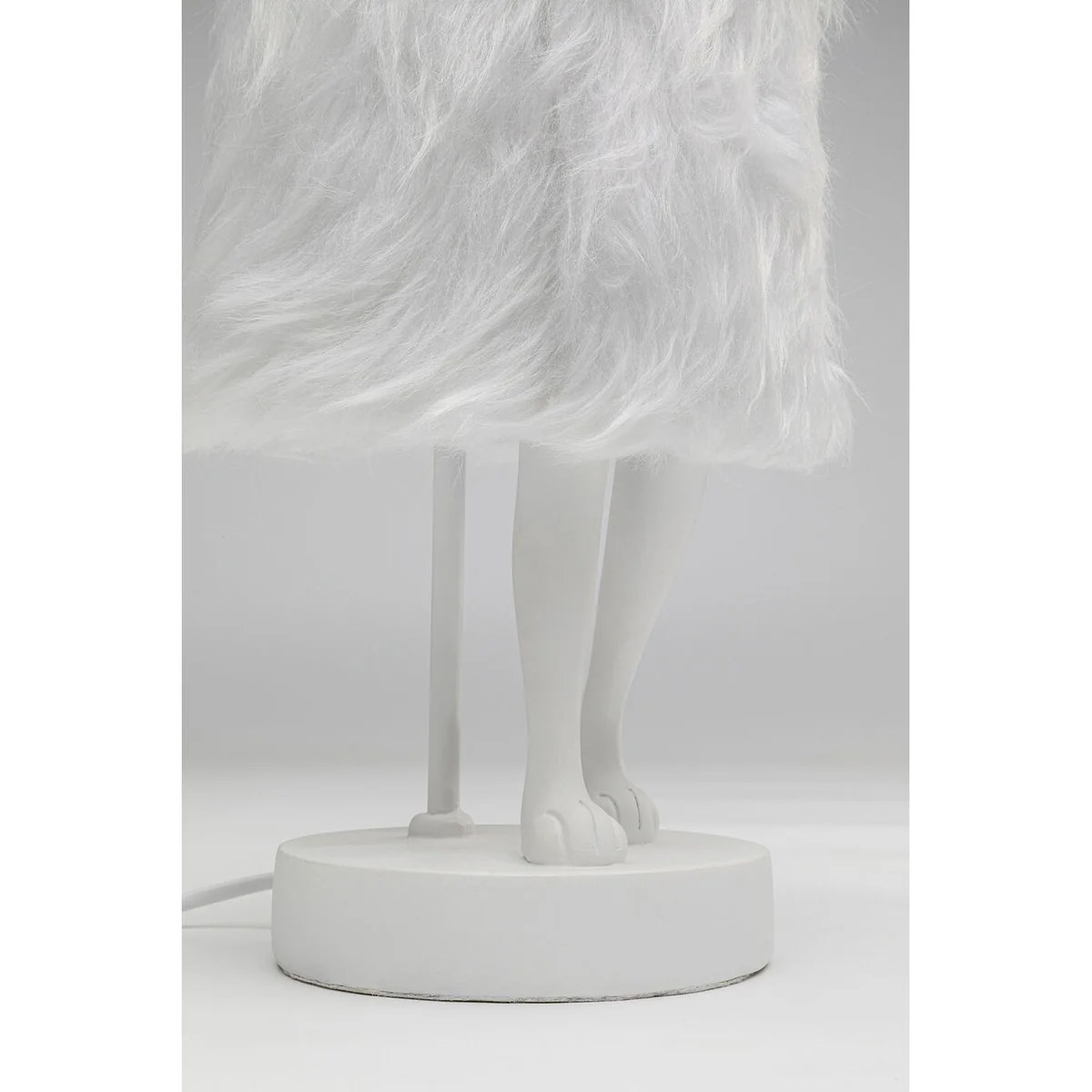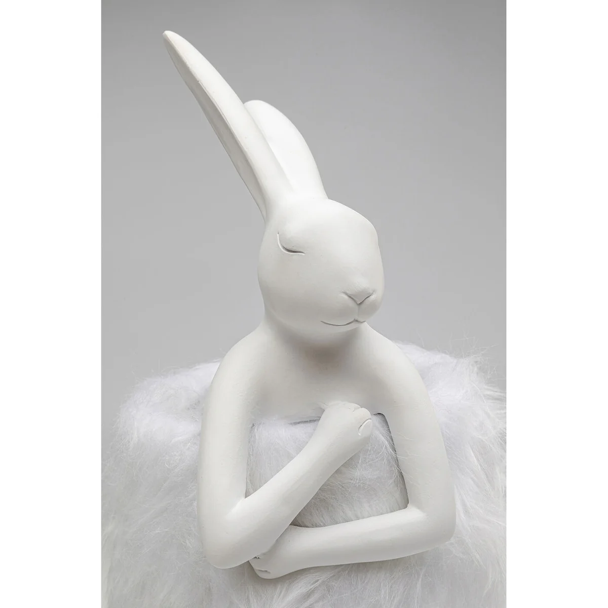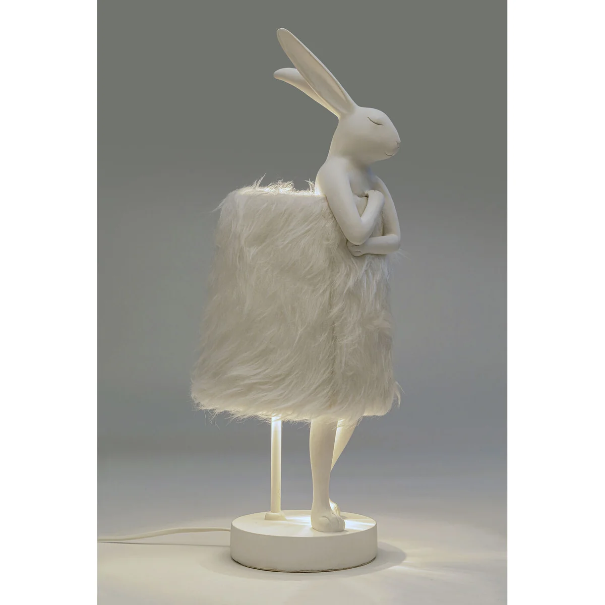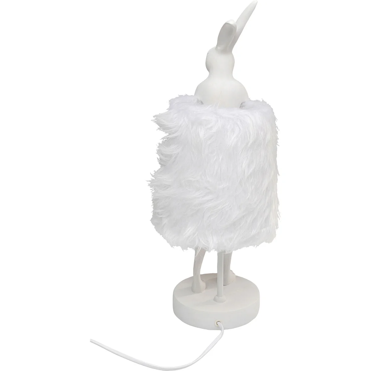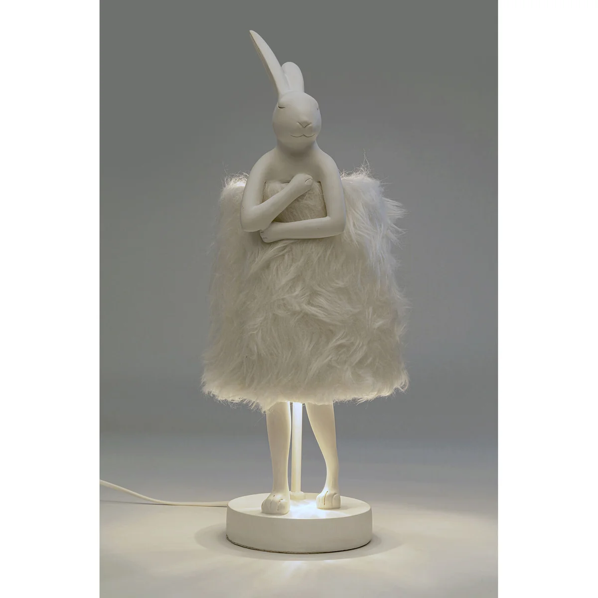 The table lamp features a sculptural bunny shape, measuring 20x18x50 cm (H/W/D), and is adorned with a plush imitation fur shade. Made from sturdy polyresin and topped with faux fur, this lamp is not just a whimsical decorative piece but a durable addition to your decor. Note, the bulb is not supplied with the lamp.