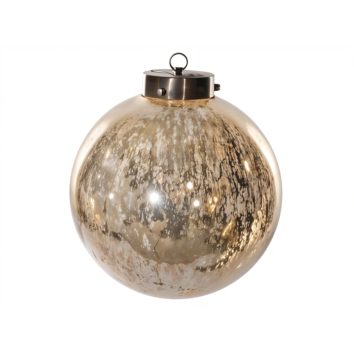 Characterized by its oversized silhouette and rich aged finish, this ornament is a stunning reflection of light. Its 40cm size and made from a blend of glass and metal, it delivers an exquisite aesthetic appeal that captures the essence of the holiday season.