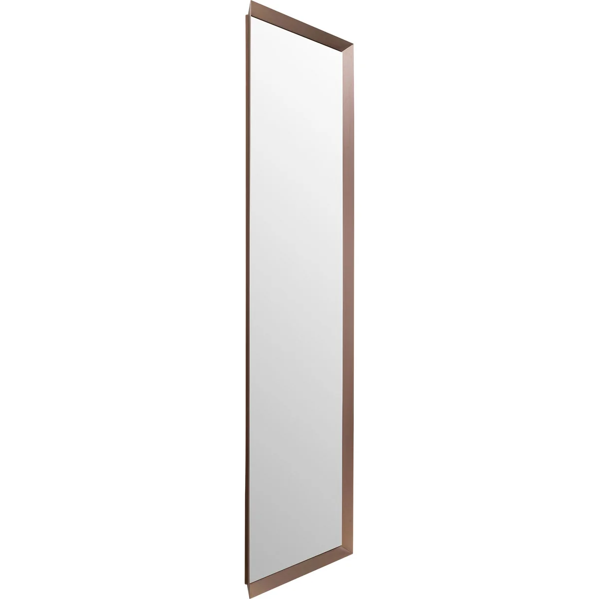 The key features of this contemporary mirror include its impressive size of 200 x 70 cm, a stylish coffee brown frame made of durable titanium-coated steel, and a pure mirror surface of 193 - 63 cm that adds a dynamic touch to any room. The mirror can be easily mounted on the wall thanks to the hanging device welded to the frame.