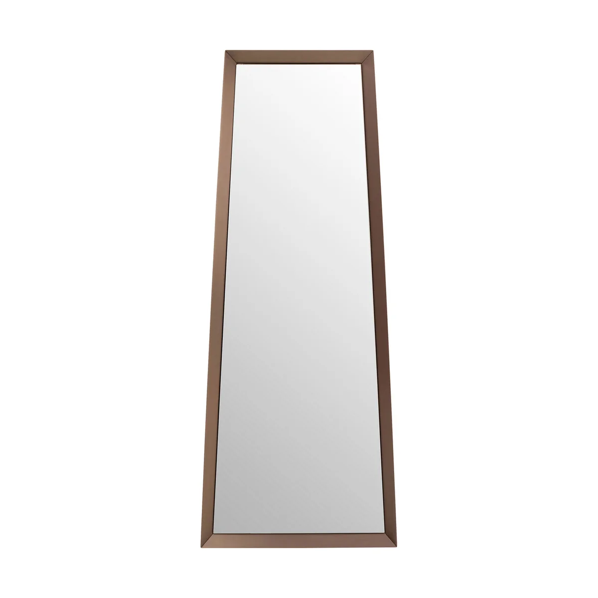 • Wall mirror with brown frame in trapezoid shape, 65(45)x160x6.5 centimeters (W/H/D) • The frame of the full-length mirror in stylish coffee brown is made of titanium-coated steel • Modern mirror for hallways, bedrooms and living rooms, whose geometric design adds dynamism to any room • Easy wall mounting thanks to the hanging device welded to the frame • The pure mirror surface is 153 x 58 cm mirror surface