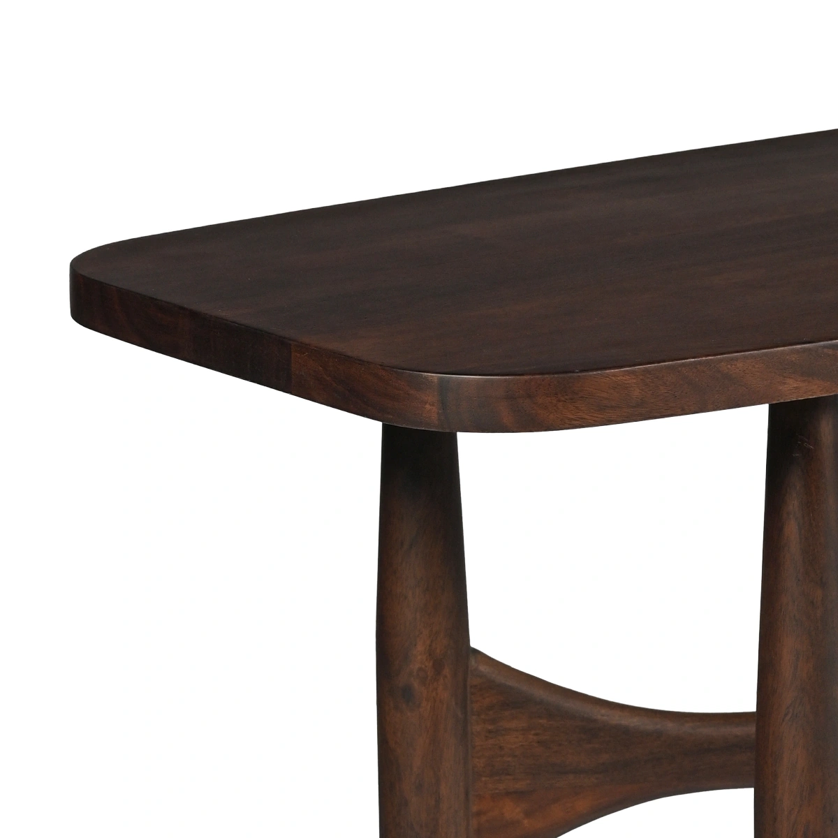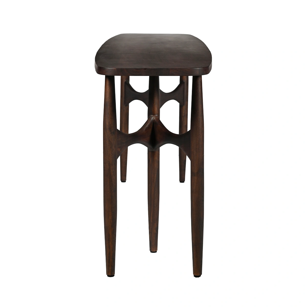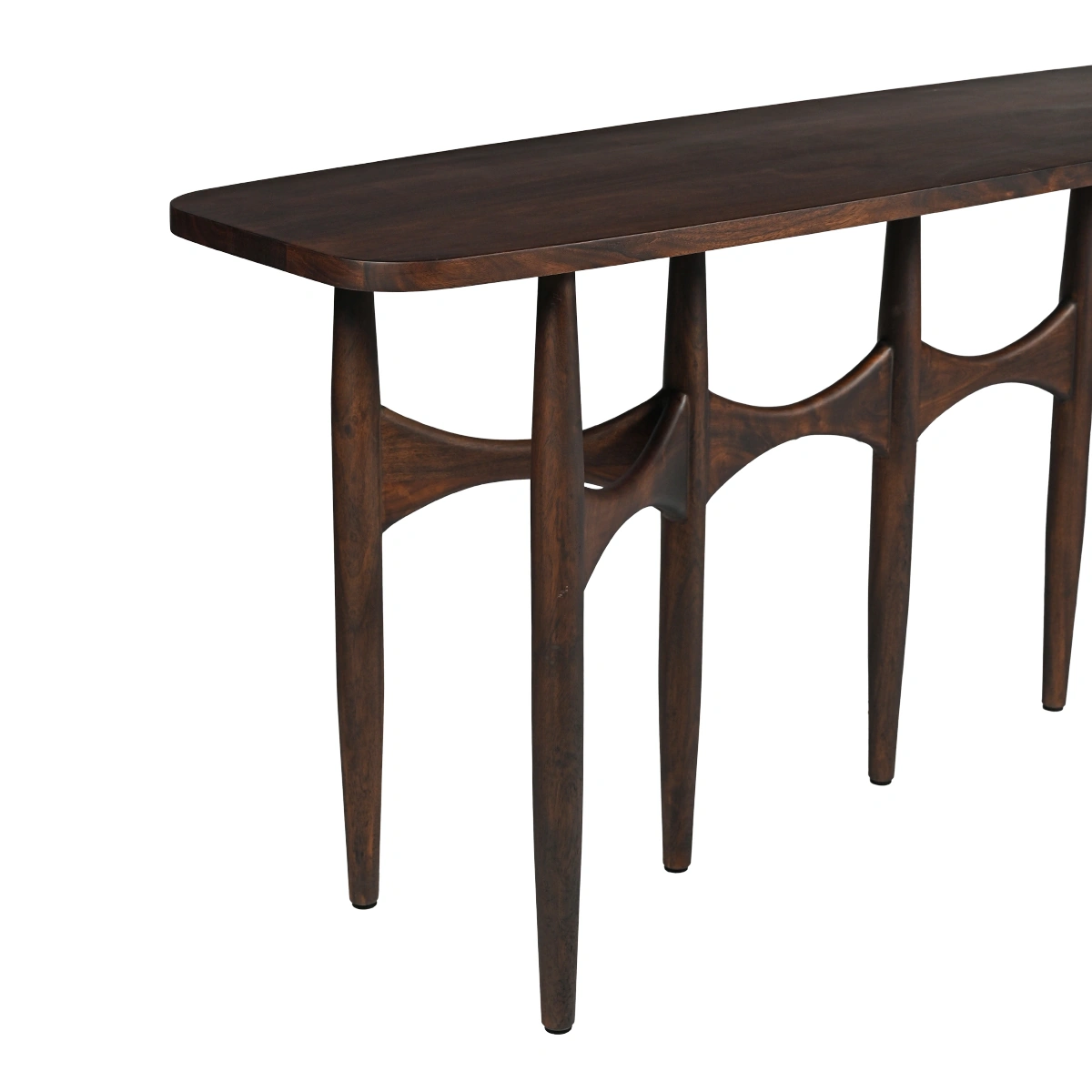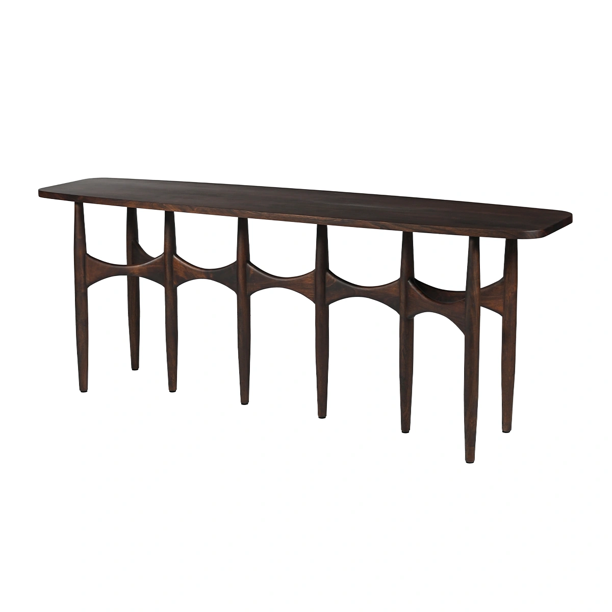 Arka Console Table in walnut is a solid wood console table designed with a scratch-resistant surface for busy contemporary homes. Made from solid acacia wood with an engineered wood base, it offers durability and long-term resilience. Dimensions: L 200 cm, W 45 cm, H 75 cm.