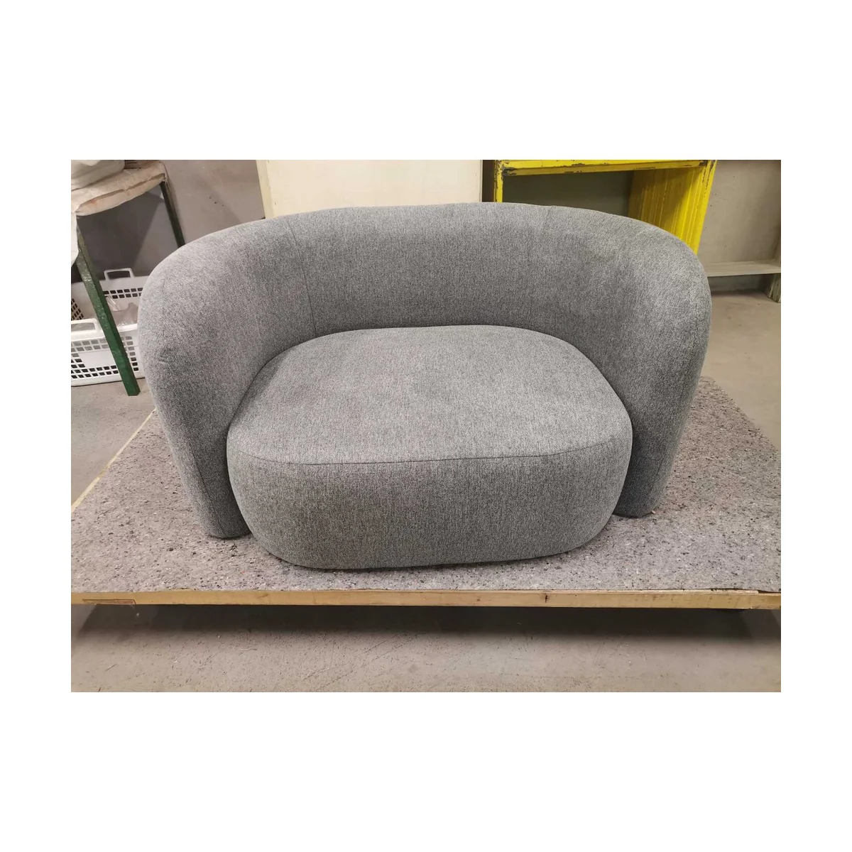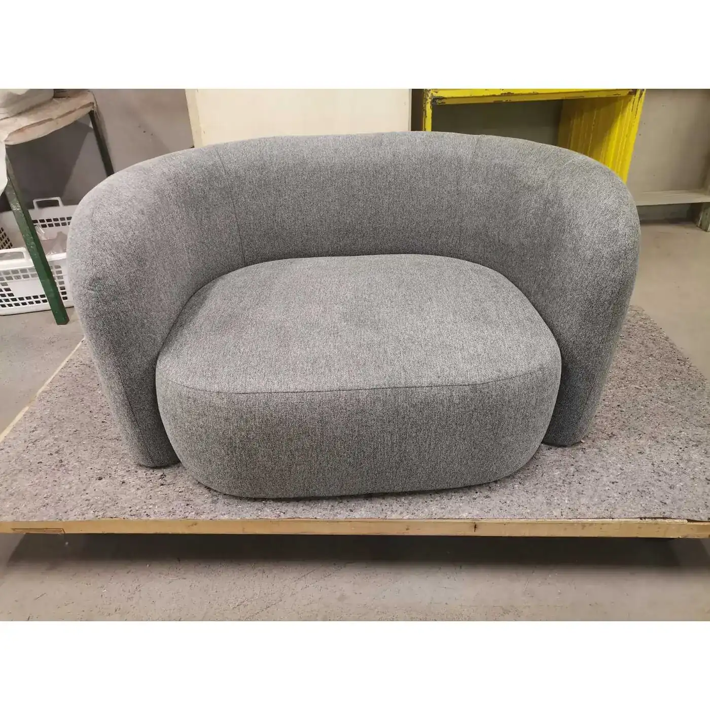 The Kelly Armchair in grey is expertly crafted with soft, durable fabric, providing comfort and style. The sleek grey hue enhances a modern, elegant ambiance, making it a versatile addition to any room.