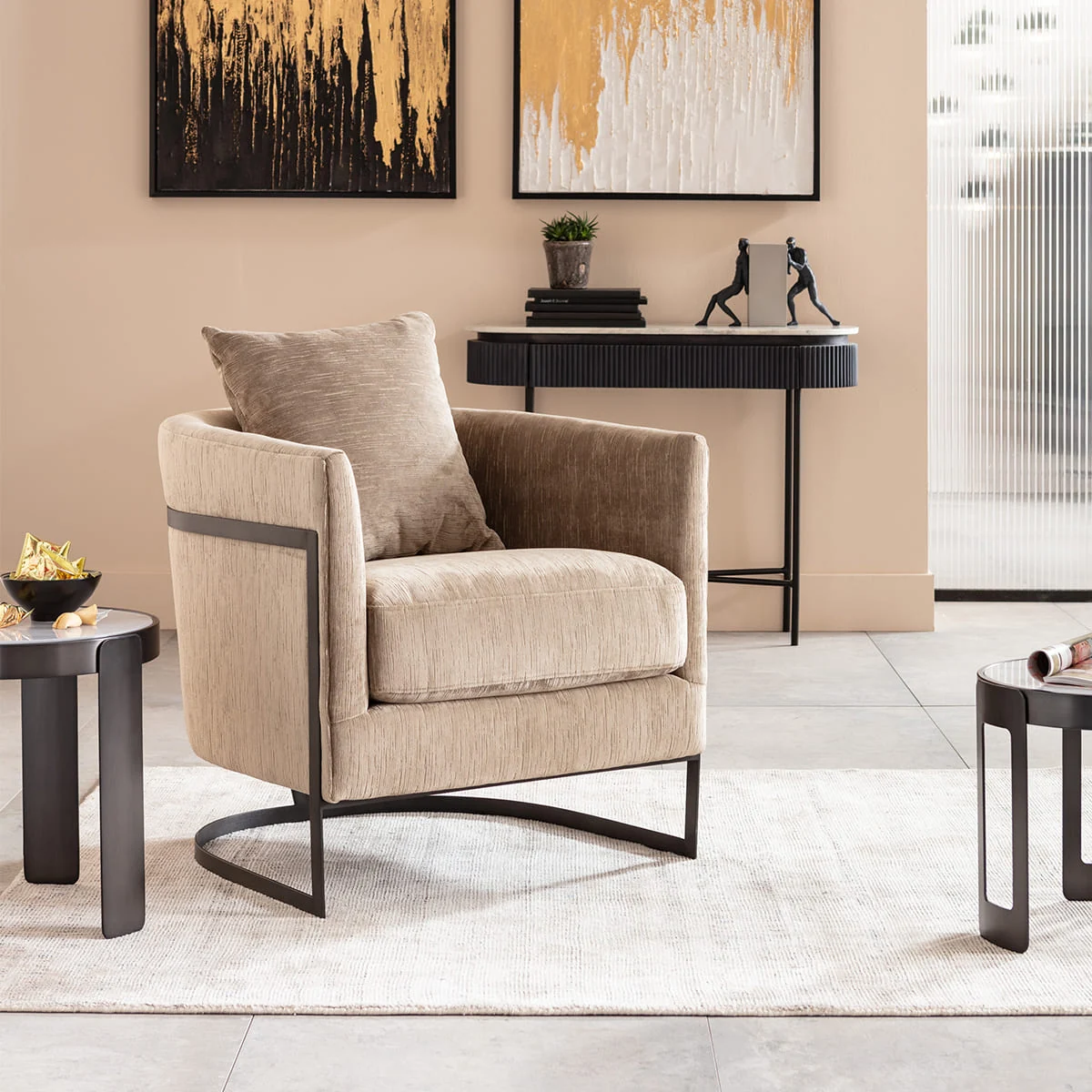 The La Vida Armchair combines sculptural design with everyday ease. Its high back, rounded arms, and plush upholstery offer a composed yet cozy seat. Ideal for lounges, bedrooms, or offices