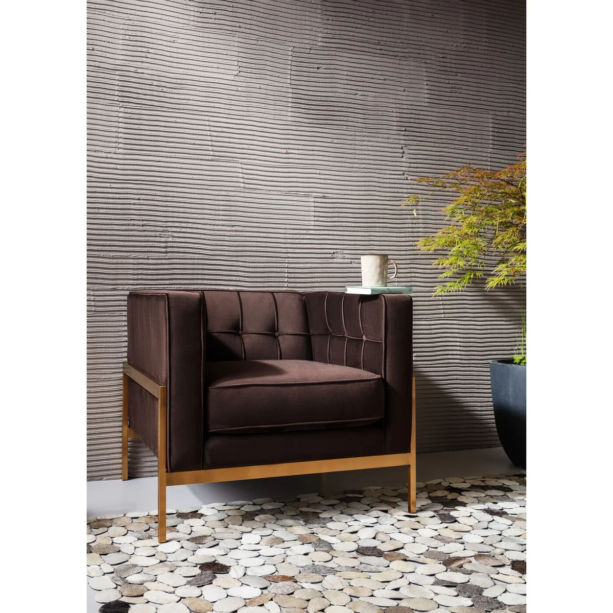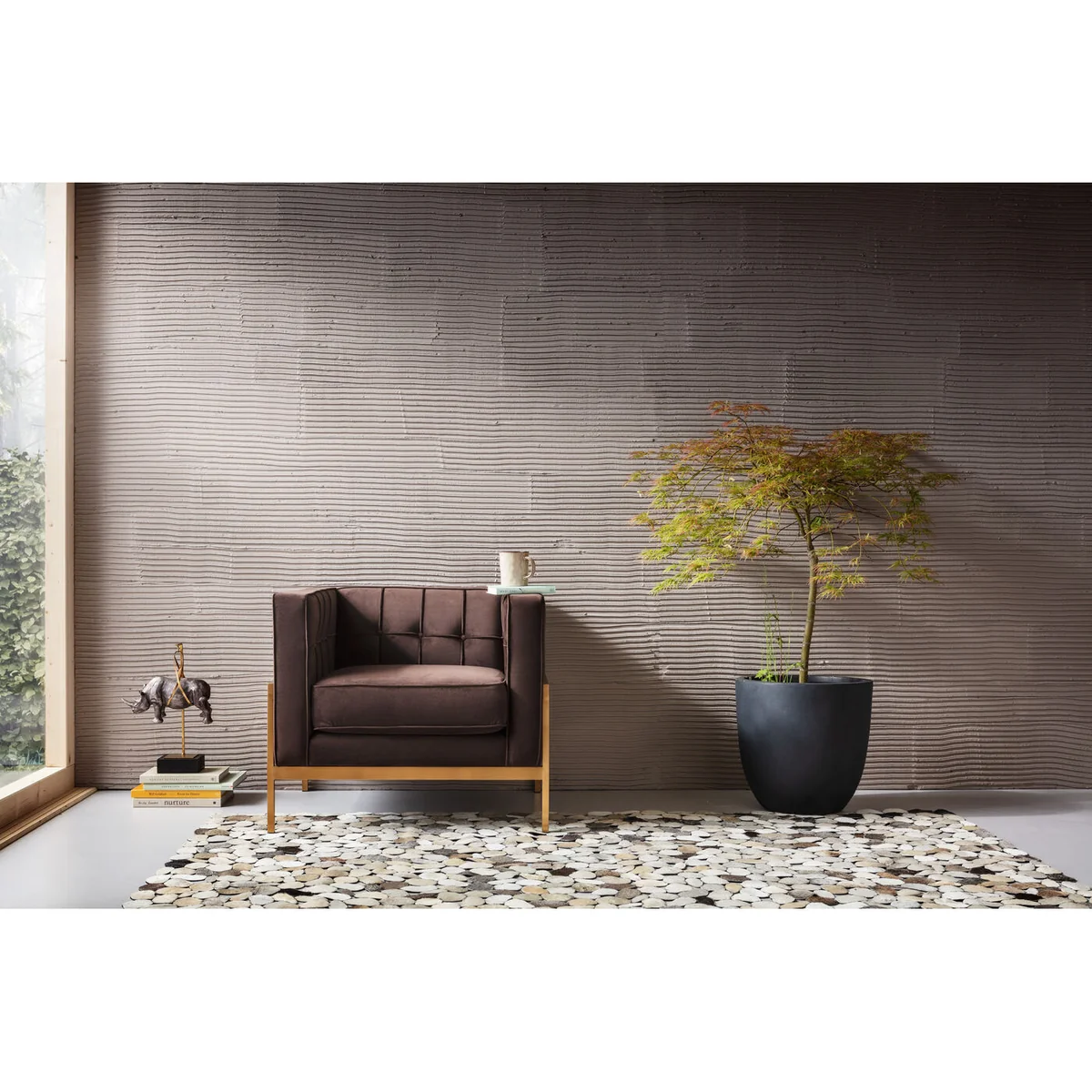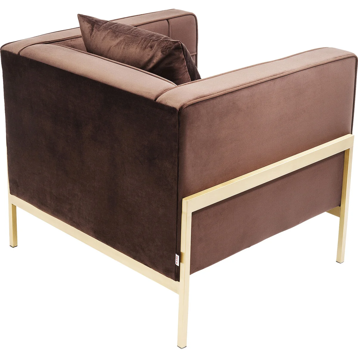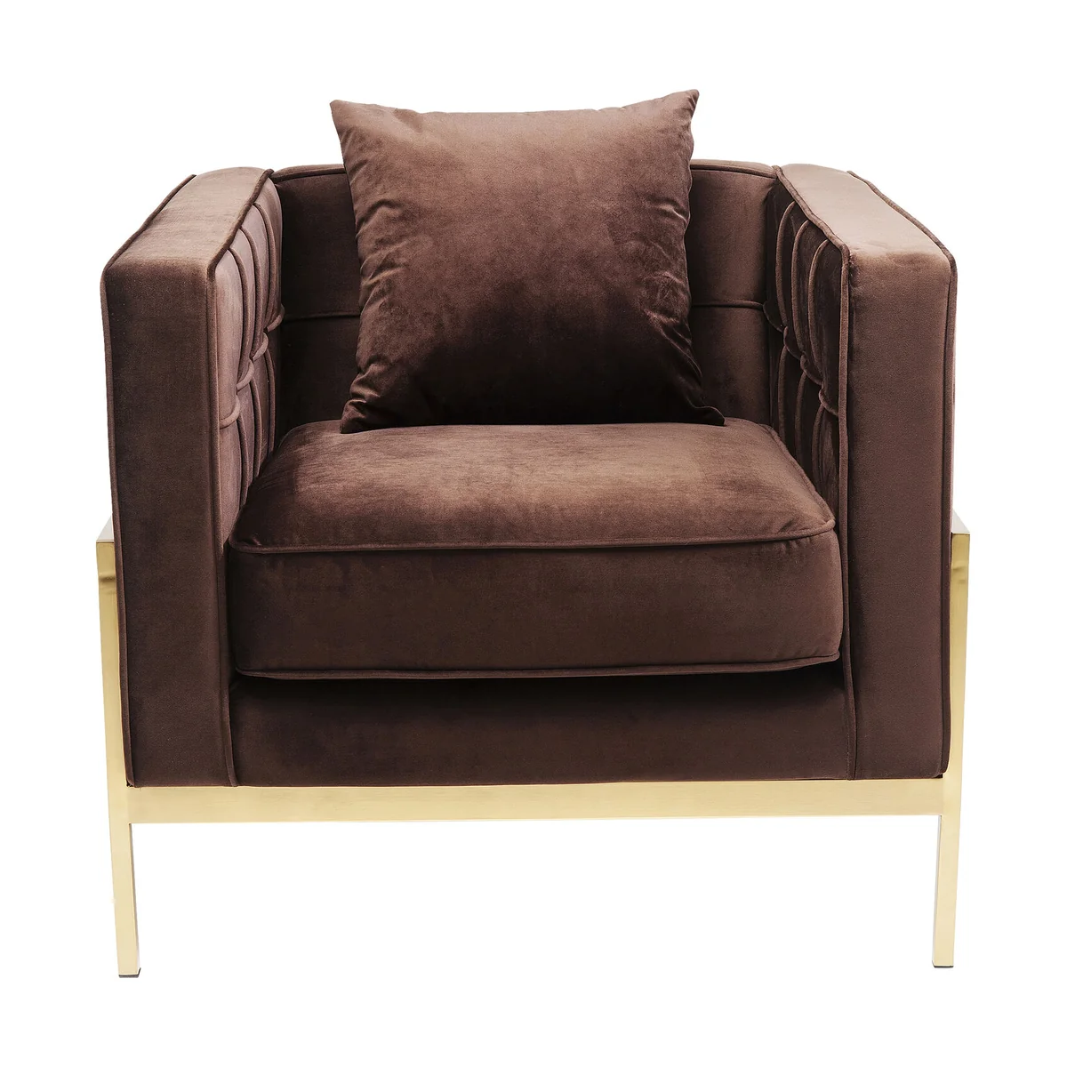 ● Armchair in the classical Tuxedo style, which enhances the room with its classical proportions ● Button-stitching and decorative seams are special details that make the armchair a special designer piece ● Modern design, straight lines and lots of lightness thanks to the elegant metal frame ● A statement piece of furniture, not least thanks to the colour: warm brown tones from whiskey to chocolate are really appealing ● Incidentally, it is also comfortable and cuddly thanks to the seat depth