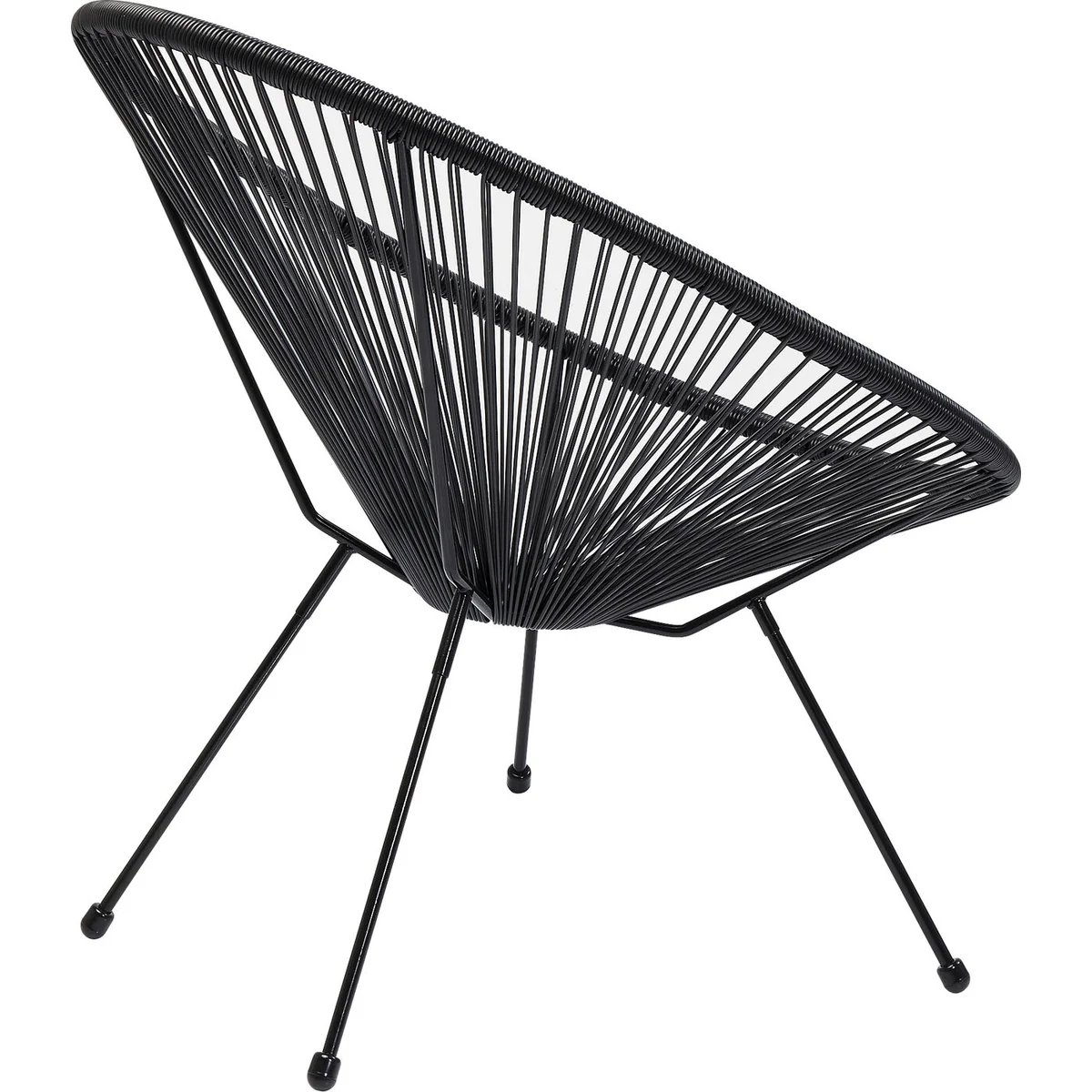 Crafted with a steel powder-coated frame for durability, this armchair features a striking black color that adds a sophisticated touch to your decor. Its dimensions of L 73 cm, D 78 cm, H 85 cm makes it a perfect fit for most spaces. A design inspired by the classic Acapulco chair, it blends style with comfort.