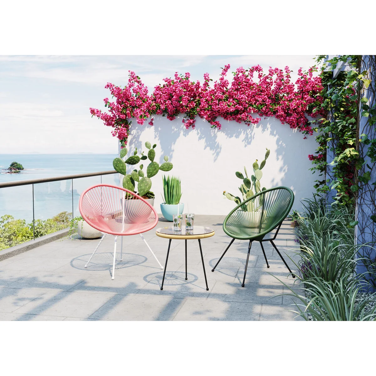 Key features include its dimensions of 73 cm in length, 78 cm in depth, and 85 cm in height, providing ample seating space. The chair is crafted from durable, powder-coated steel, ensuring longevity and resistance to wear and tear. The iconic Acapulco design offers a unique aesthetic appeal.
