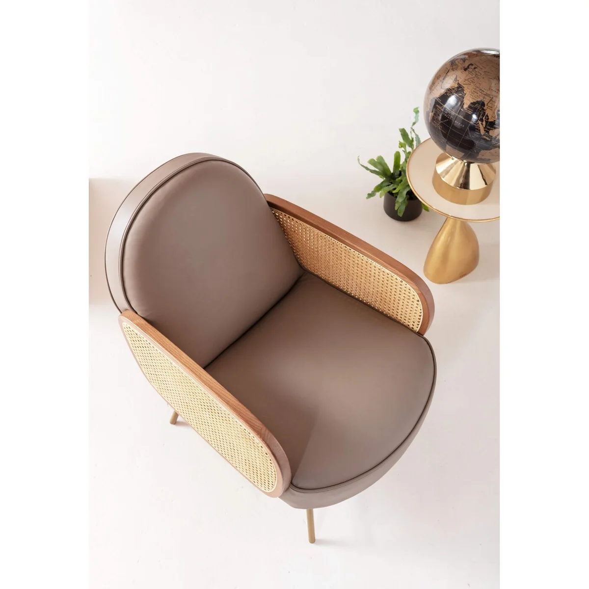 The Bahia armchair is a real eye-catcher and a highlight in any living room. The luxurious real leather cover in grey gives the armchair a classy look, while the sturdy steel legs in a chic lacquer finish ensure stability and durability. The rattan armrests also add a design highlight. The comfortable foam upholstery with no-sag under-springing provides optimal support for the body and ensures relaxed sitting. The modern and unusual design of the Bahia armchair makes it a real statement piece in your living room or bedroom. The relaxation armchair is supplied already assembled. With a seat height of 43 cm, the Bahia armchair is also ideal for tallish people. You can combine the armchair with other original designer furniture and accessories to create a unique ambience in your home.