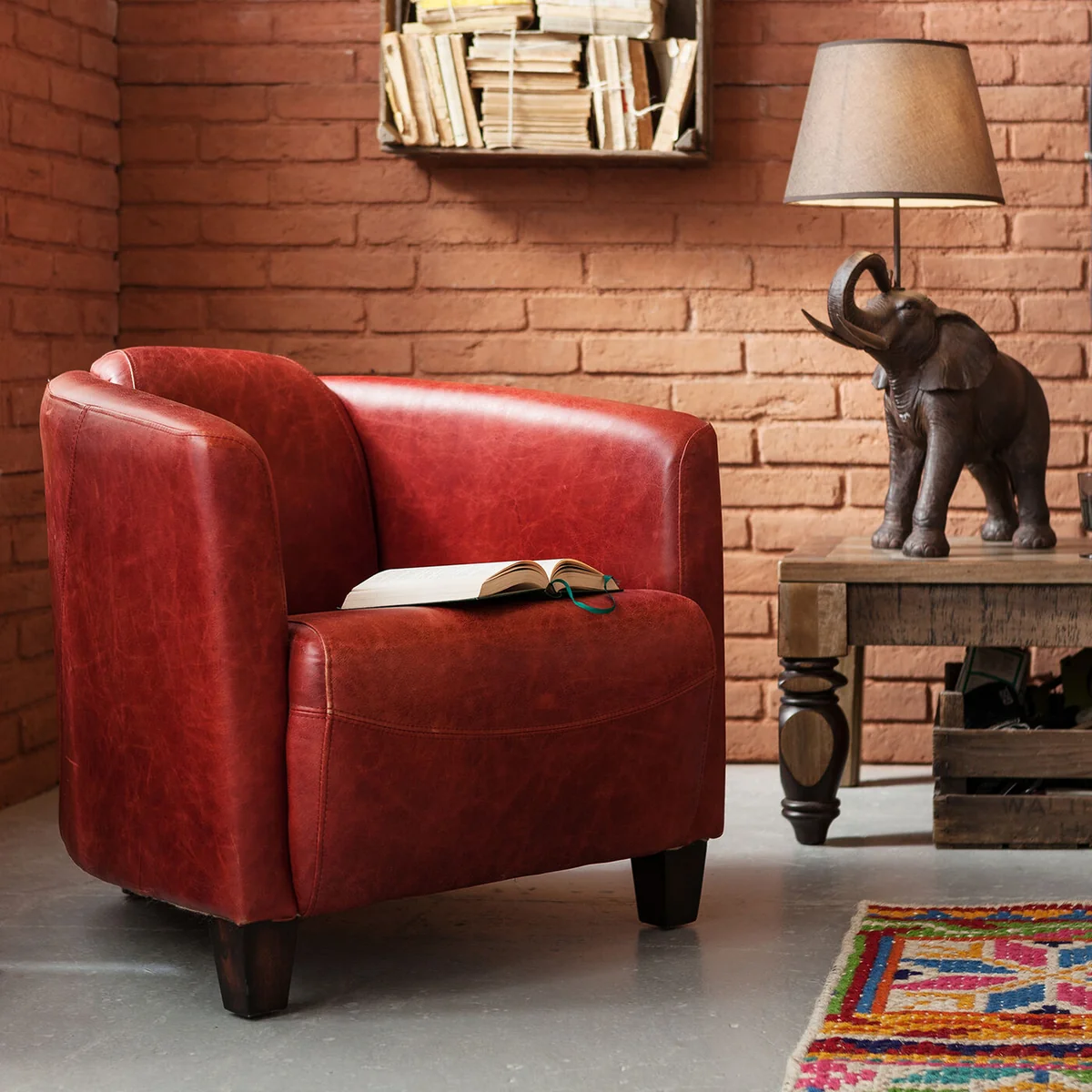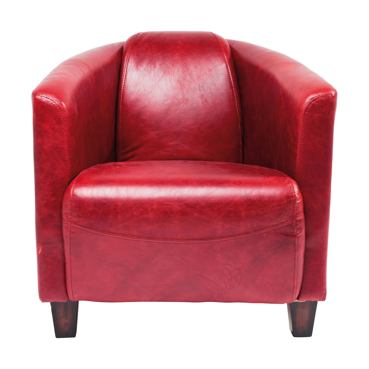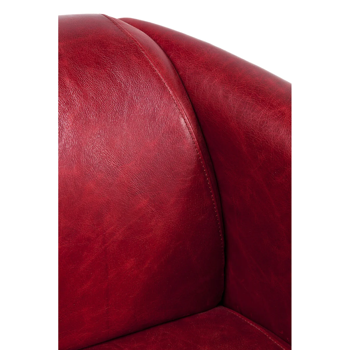 Clubby chic - This unconventionally designed armchair radiates personality and pure individualism. Aviation could have been the inspiration for its aerodynamic shape with the backrest and armrests flowing backwards. The result is an armchair with finely balanced proportions which makes a timeless and relaxed impression. Its upholstery made of red top-grain leather rounds off its top-quality impact. A piece of furniture for a lifelong friendship. This armchair is also available in brown and blue.