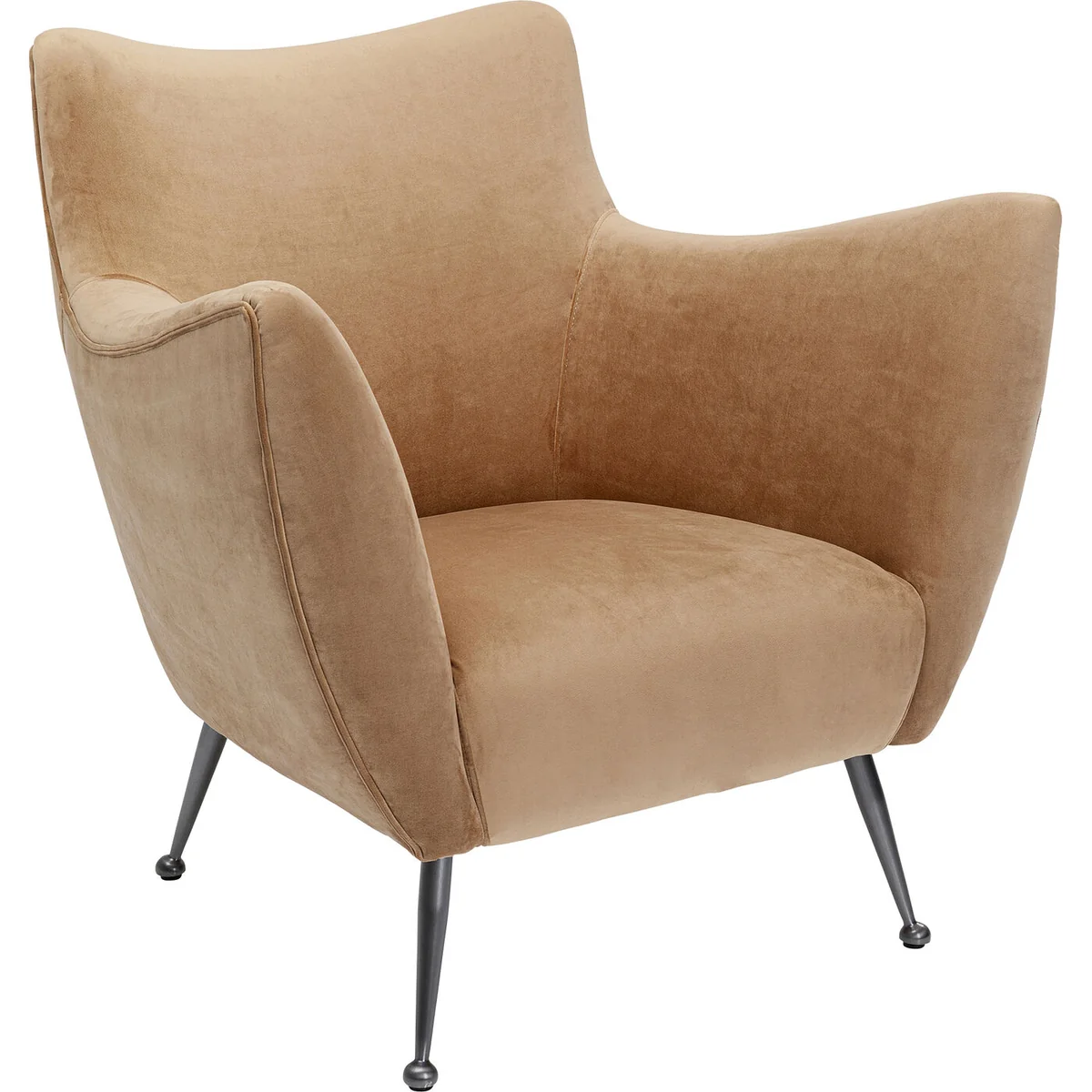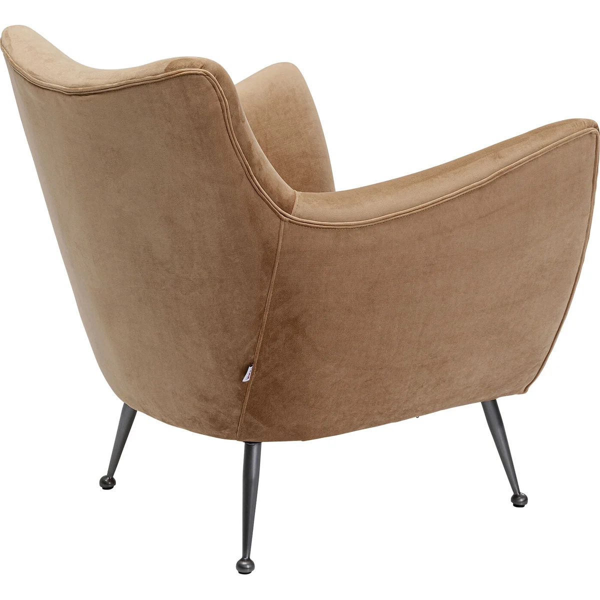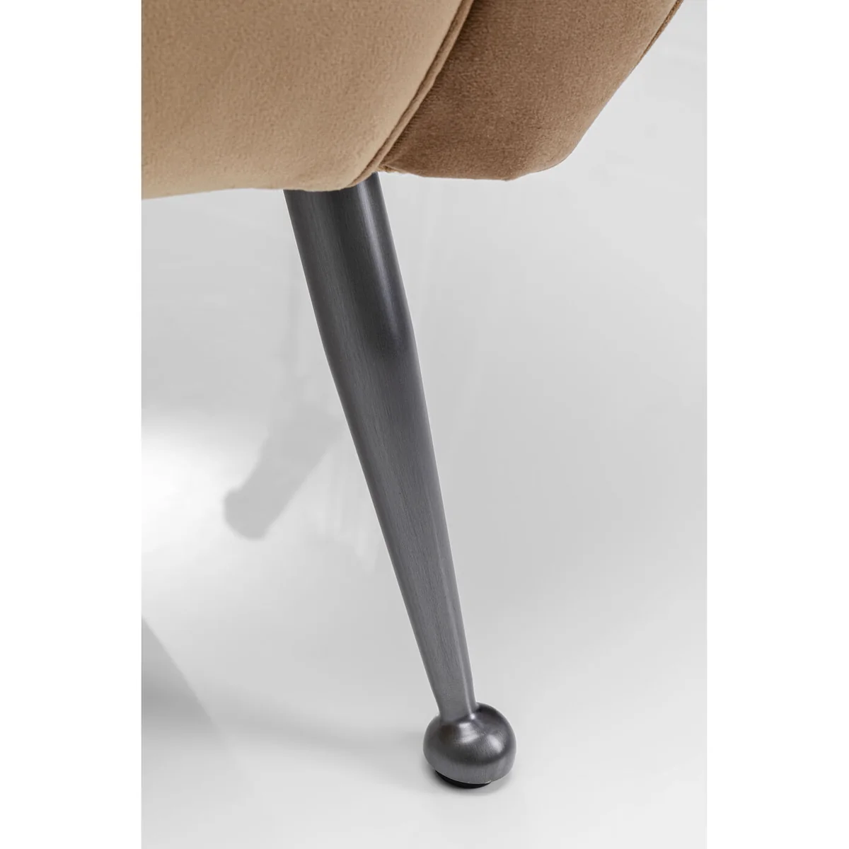 The Goldfinger Armchair in brown is upholstered in soft fabric, offering a stylish and comfortable seating option. The neutral brown hue adds a touch of elegance, making it a sophisticated addition to any space.