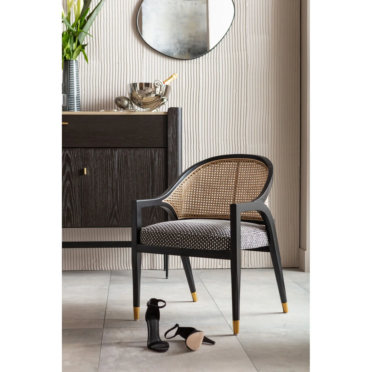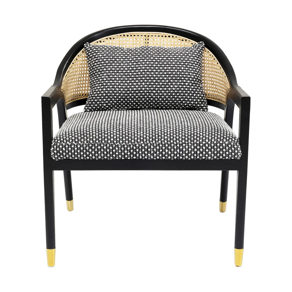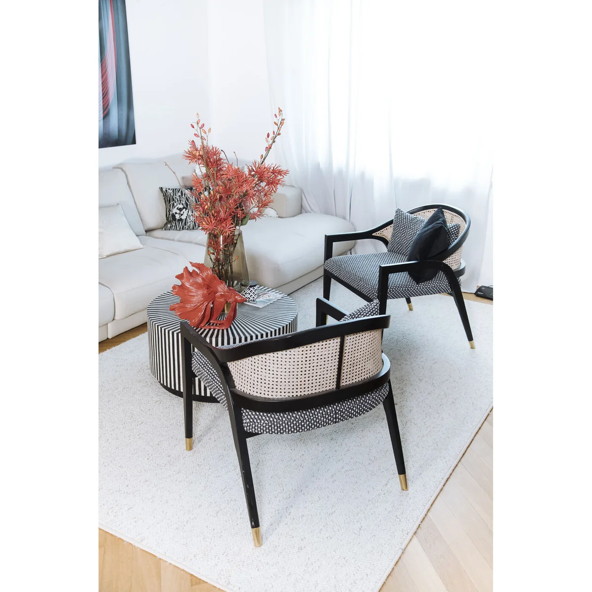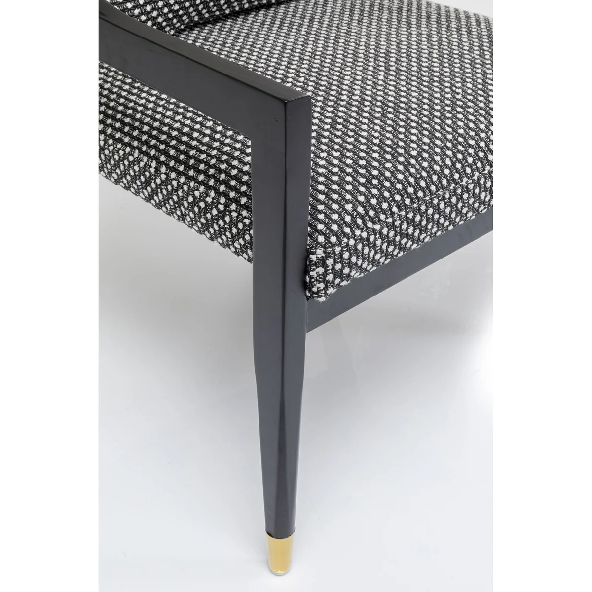 The armchair boasts a sturdy frame made from lacquered beech solid wood, ensuring durability and stability. Measuring 65.5 cm in length, 68.5 cm in depth, and 77 cm in height, it's the perfect size for cozy corners or as an accent chair in larger rooms. Its golden lacquer finish gives it a rich, opulent look that's hard to miss.