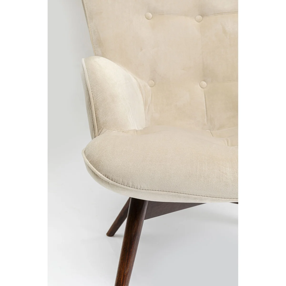 ● Comfortable upholstered armchair in a trendy retro design ● A delight to the touch: the caressingly soft, slightly velvety shimmering cover ● Particularly comfortable thanks to the slightly inclined and well-padded backrest ● With the legs made of beech and the cover in a subtle beige, it's a modern classic for neutral interiors ● A feast for the eyes on its own, an eye-catcher in pairs and as a complement to the sofa