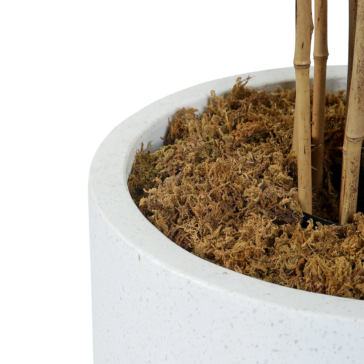 Plastic fabric (for artificial plants) and concrete pots are the materials used, designed for indoor use only, not for outdoor use.