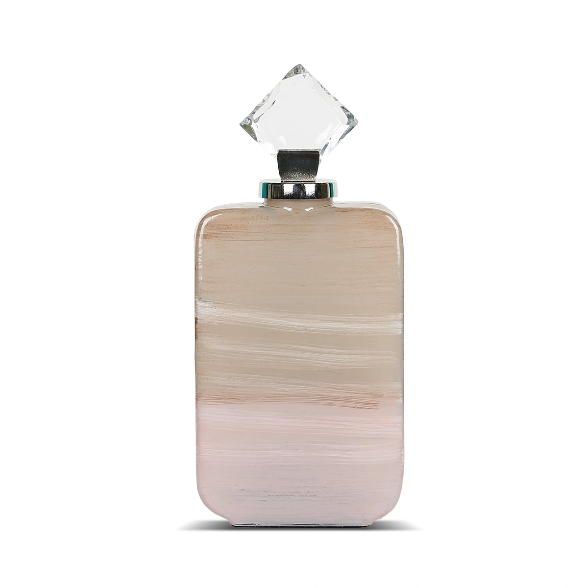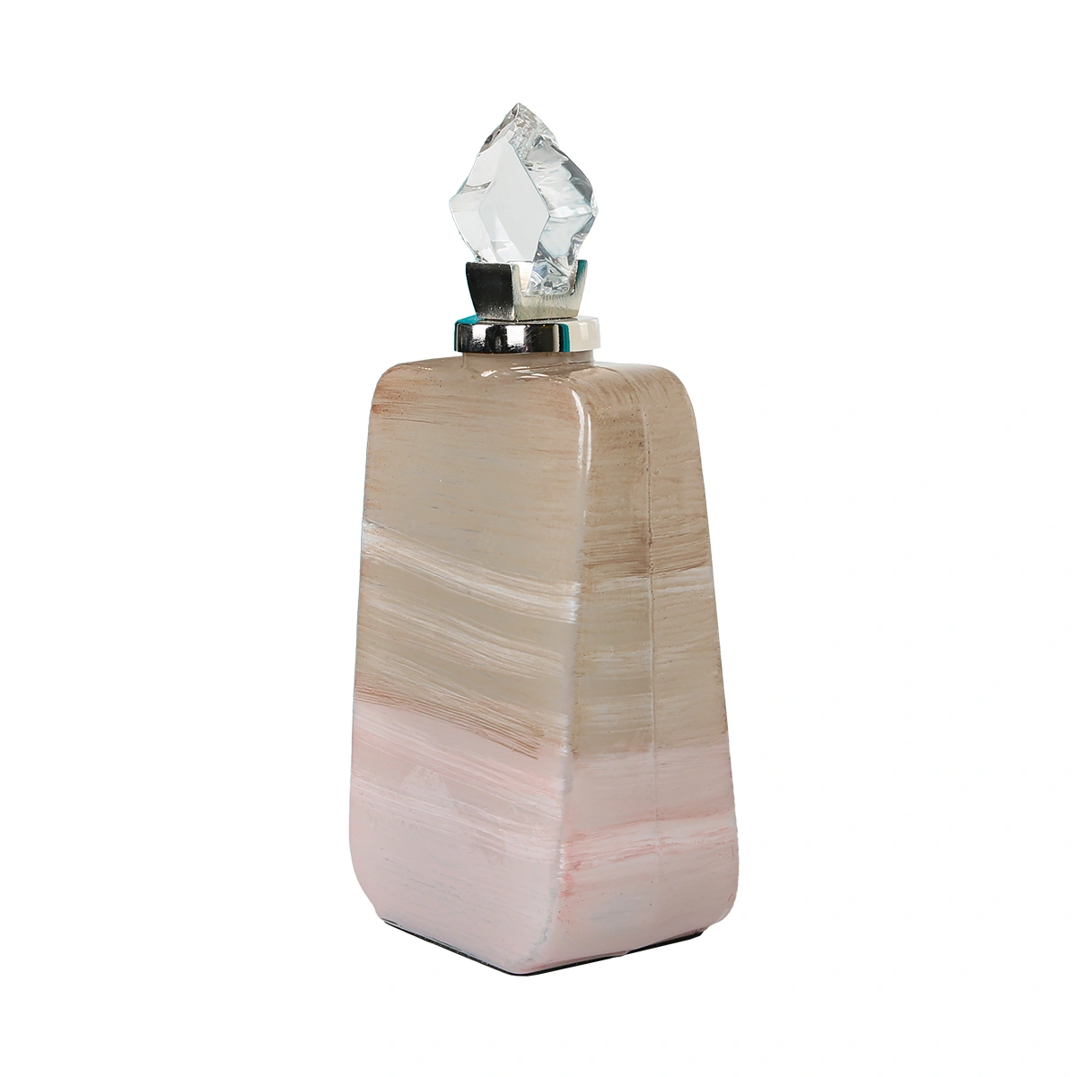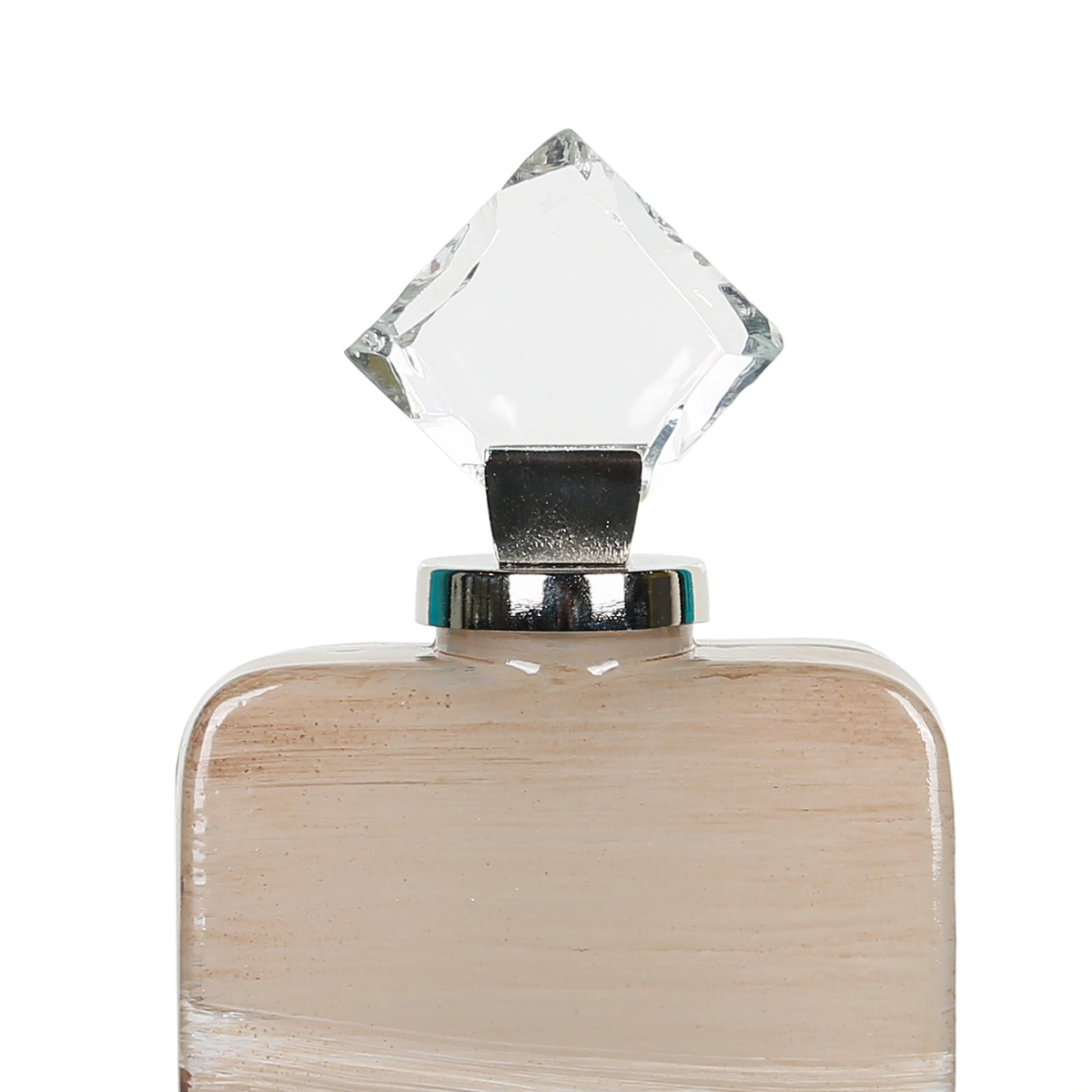 This exquisite vase, measuring 15 cm in length, 10 cm in width, and 35 cm in height, is crafted from high-quality glass, acrylic, and iron. The nickel lid adds a distinct charm, making this vase a standout piece. Its brown color adds a warmth and richness to any decor setting.