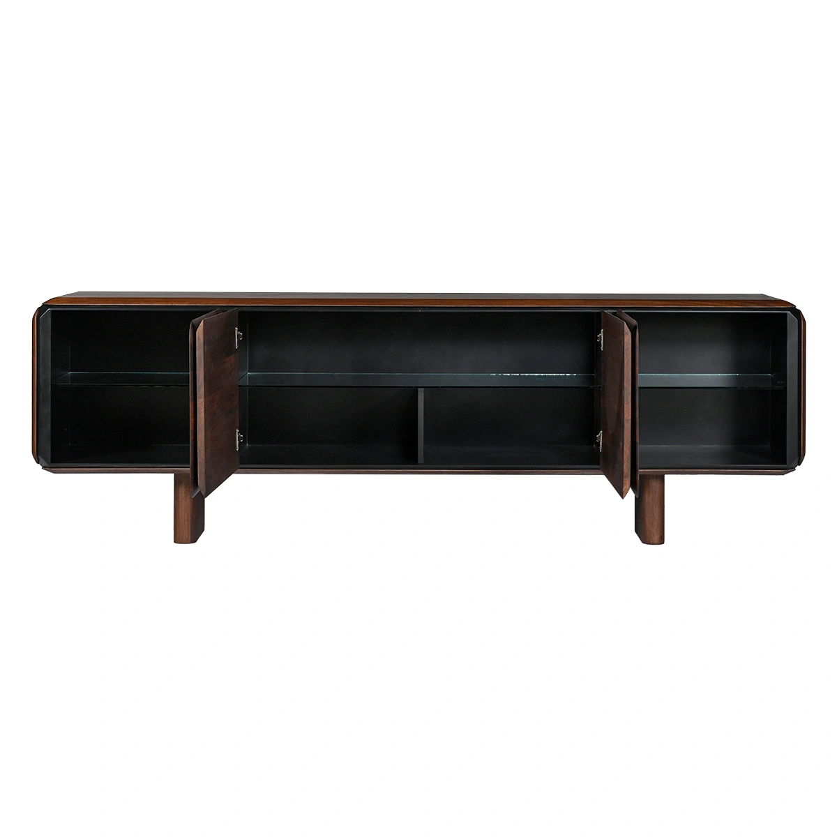 Astra Sideboard in walnut black is a solid wood storage piece designed to bring spacious organization and contemporary style into dining rooms.