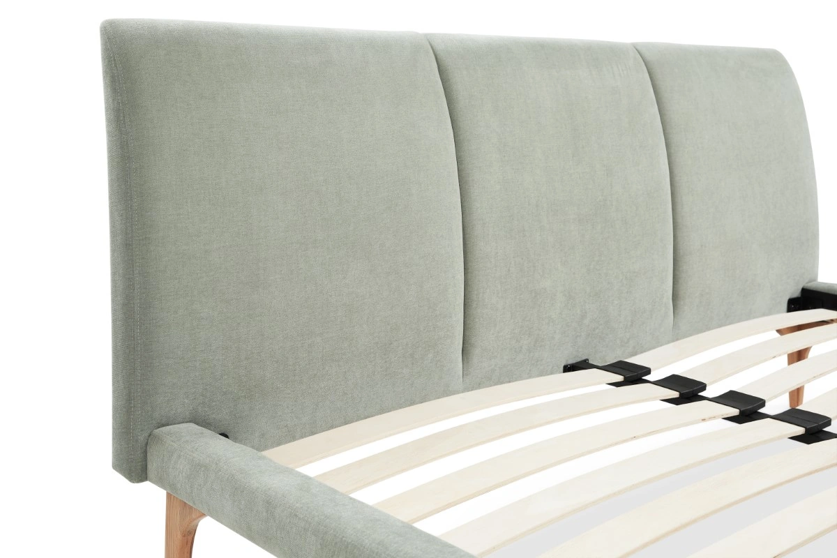 Atlanta Upholstered Bed With Slat, Oak/Moss
