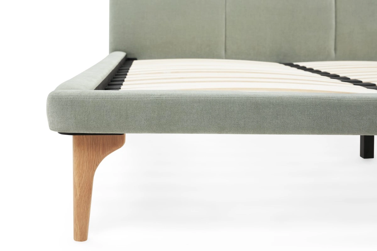 The Atlanta Upholstered Bed features a moss green fabric and slatted oak frame. Its warm, natural look adds elegance to both modern and classic interiors. This bed creates a cozy and stylish retreat.