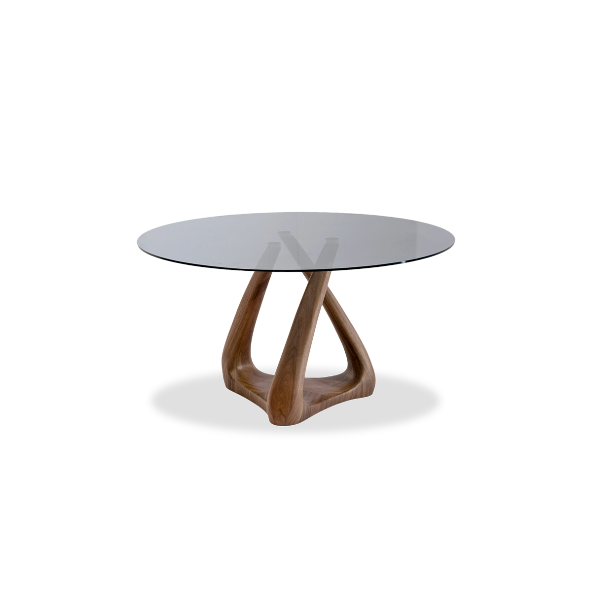 Avignon Round Dining Table in Walnut Glass, 140 cm Modern Centerpiece