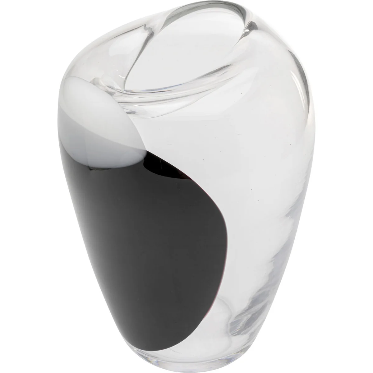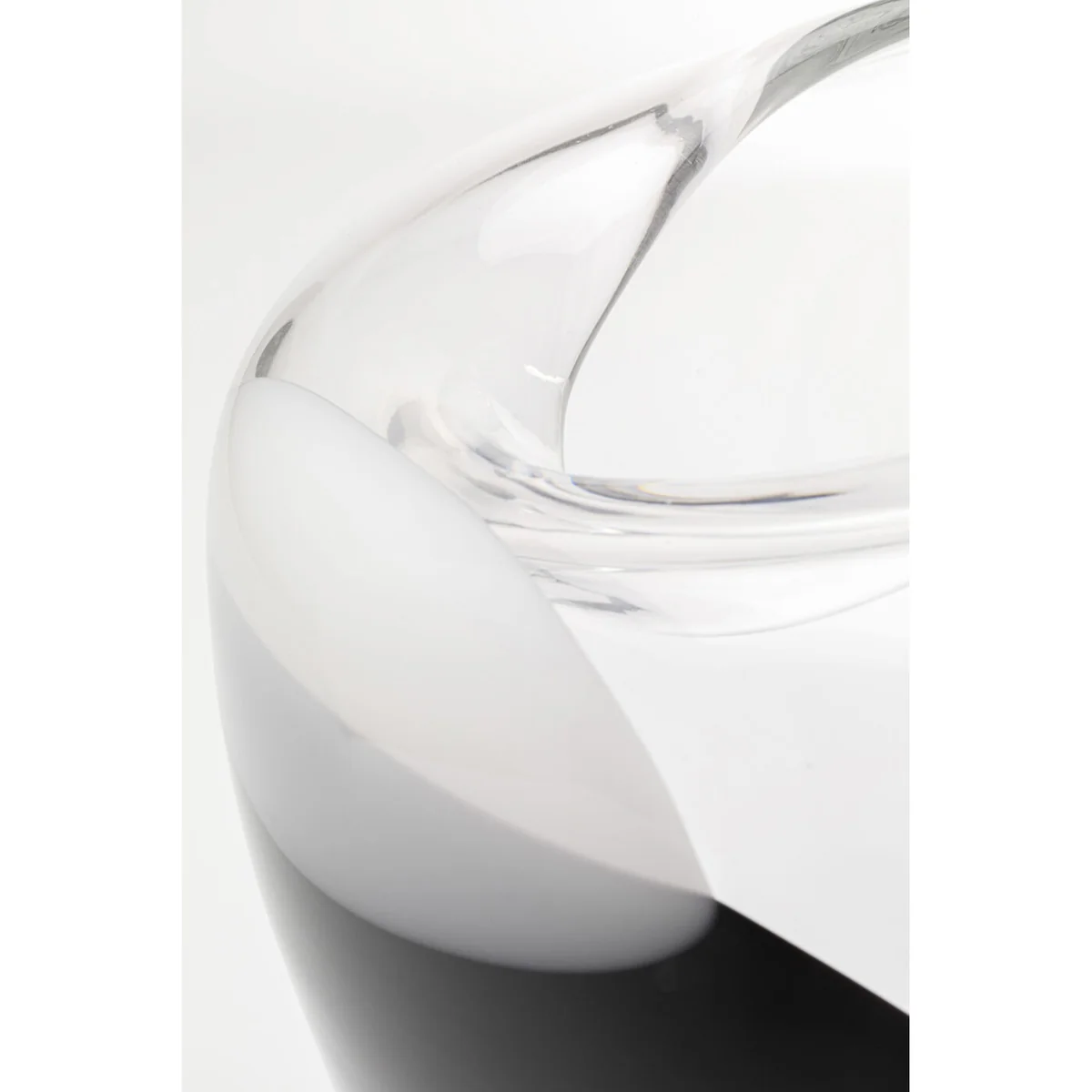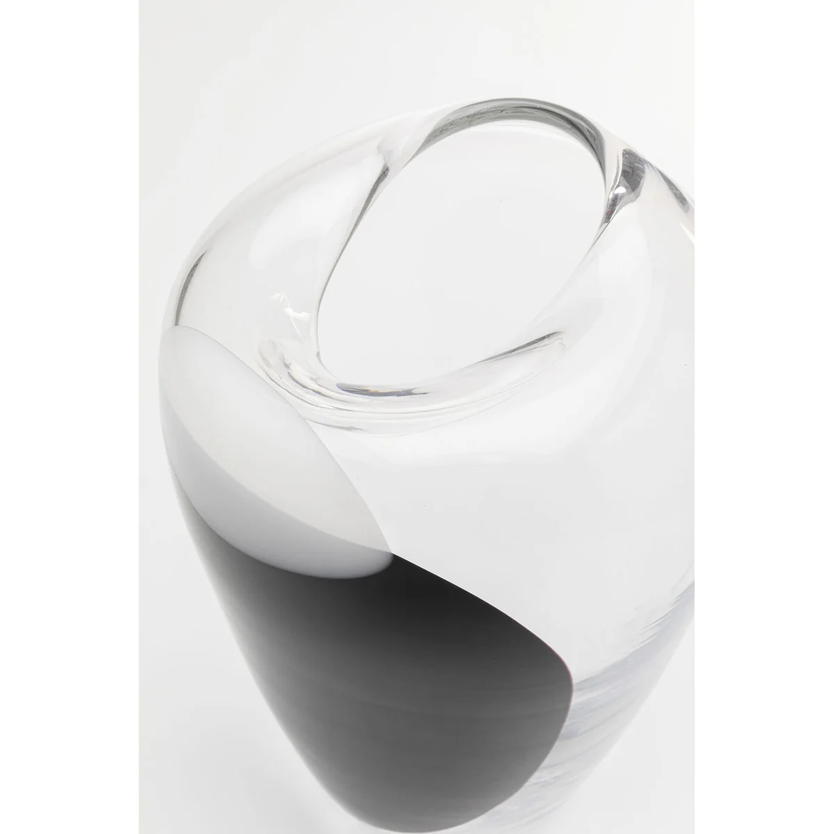 With dimensions of 27 x 19 x 19 cm, this glass vase captivates with its organic design featuring curved details in black and milky white. Whether it's housing fresh flowers, dried arrangements, or standing alone as a decorative object, this mouth-blown vase is truly a one-of-a-kind piece.