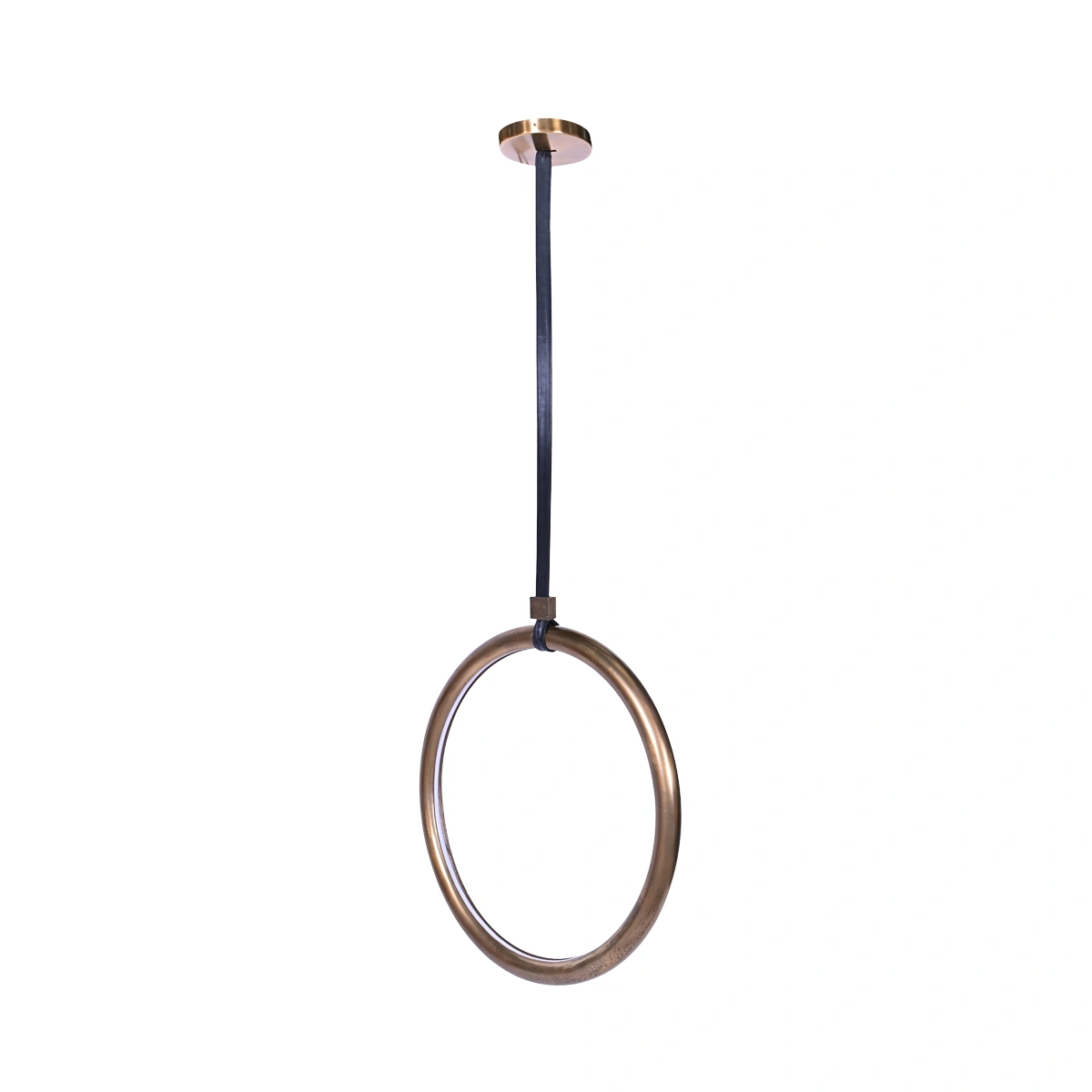 The pendant features a rounded silhouette, making it a perfect fit for both contemporary and classic interior styles. The gold finish adds a luxurious touch, while the accent trim made from leather adds a unique flair. With dimensions of 76.2 cm in length and width, it's ideally suited for illuminating kitchen counters, hallways, or intimate corners.