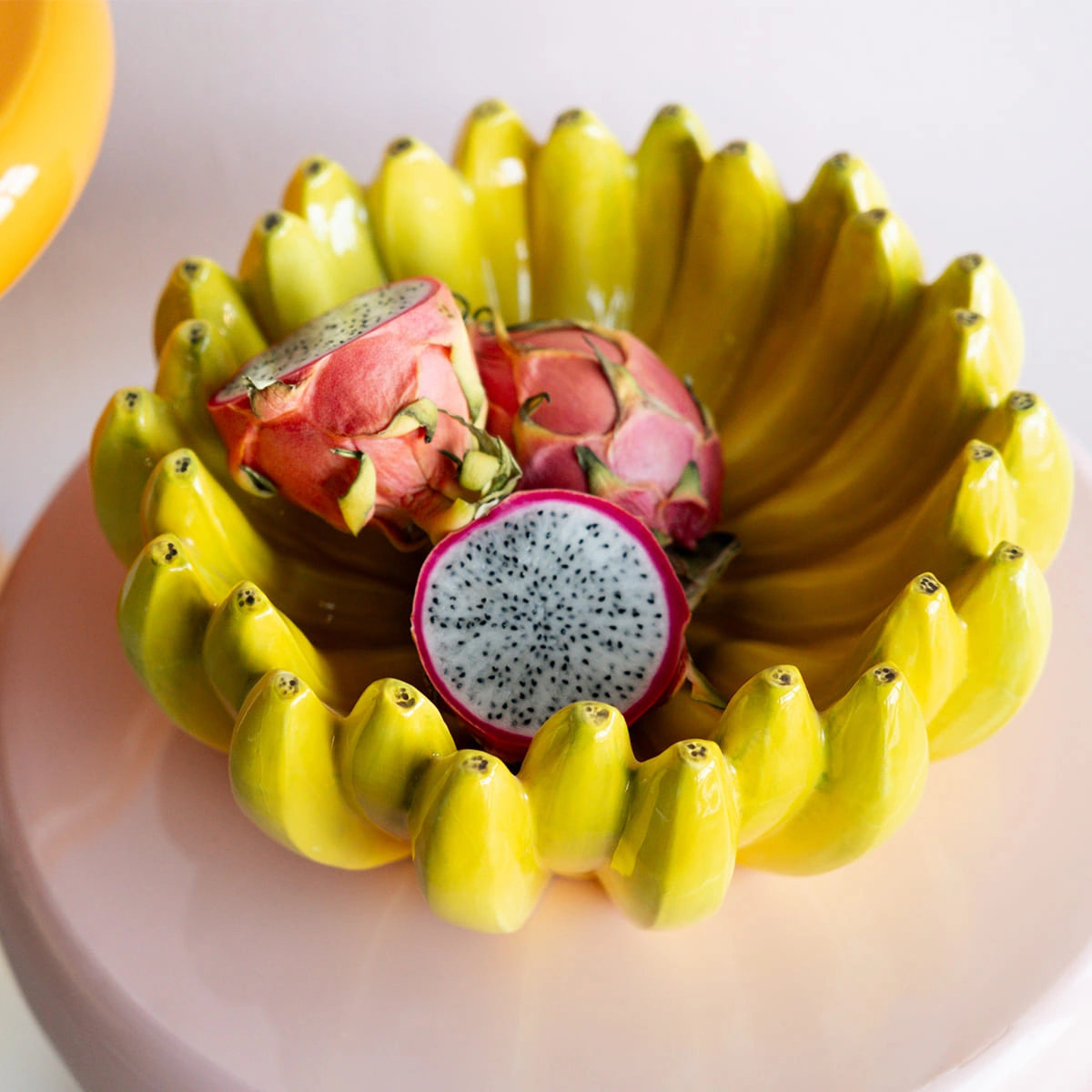 Bananas Deco Bowl in Yellow Porcelain, Size 30 x 30 cm