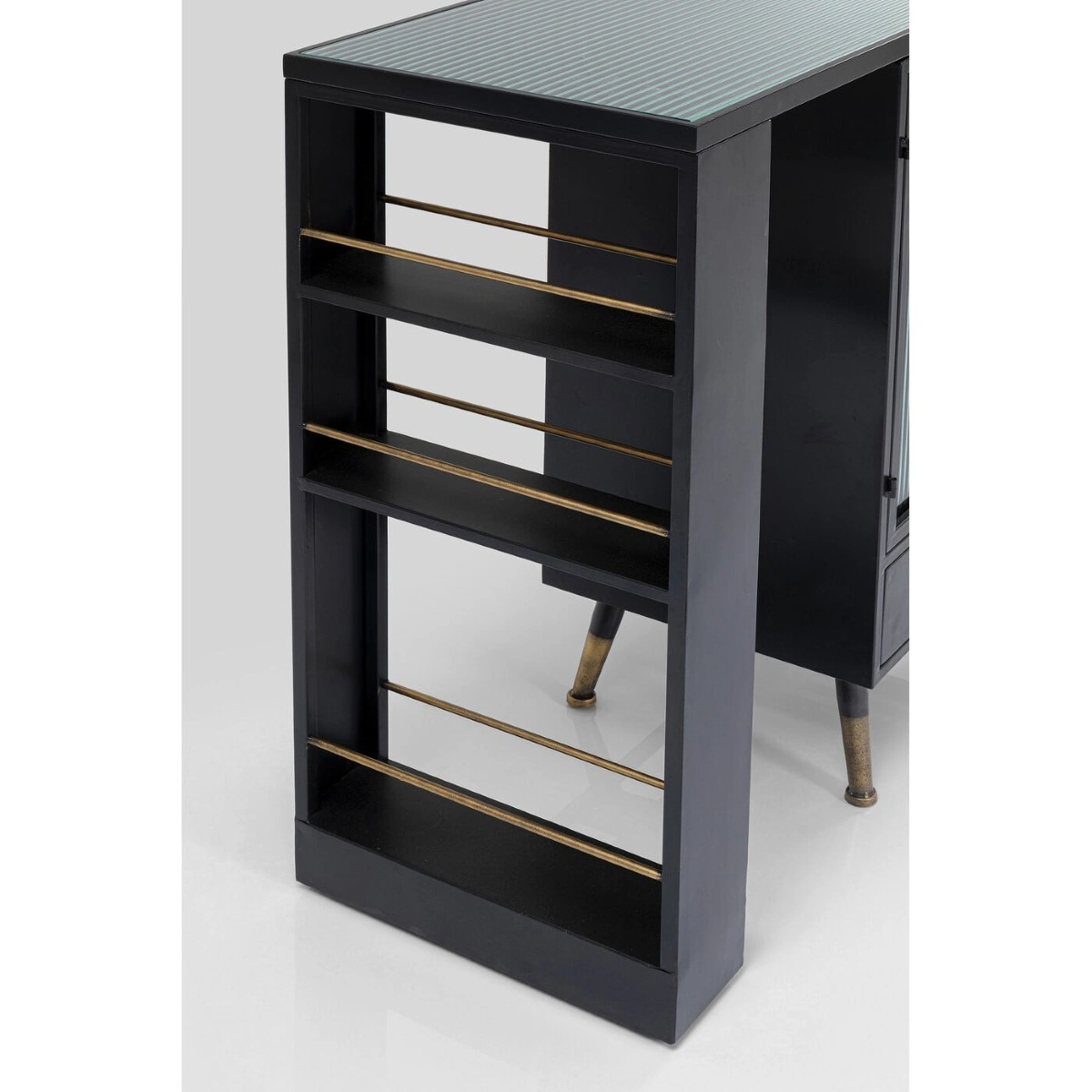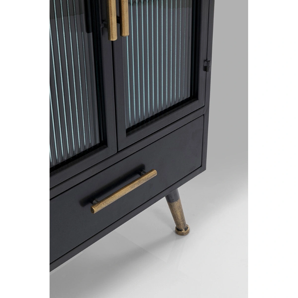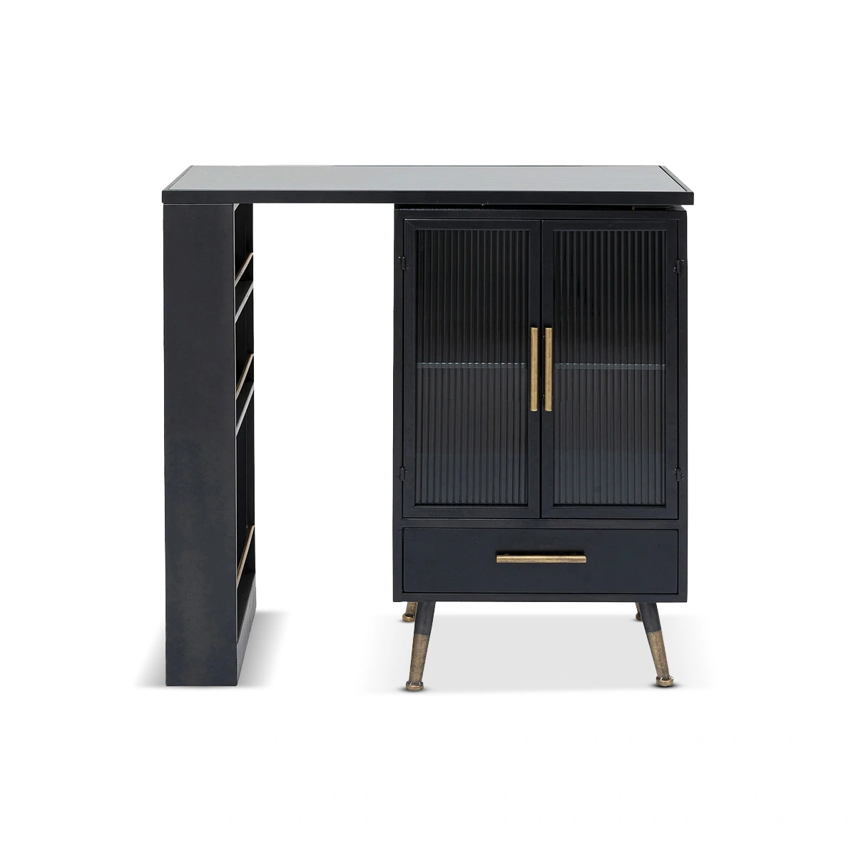 • A bar for the home with sophistication! A rotatable base cabinet with storage space and a drawer, with an extra shelf on the side ,A cool and absolutely timeless material mix of steel and ribbed glass - a refined version of the industrial style