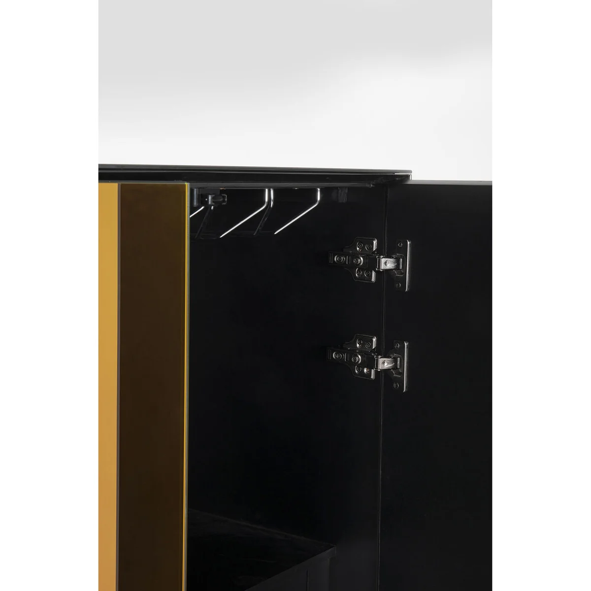 Our bar cabinet, encased in iridescent reflecting glass, is more than just a storage unit - it is art. Iridescence is an optical phenomenon in which a surface appears in different colours depending on the perspective, an effect we know from iridescent soap bubbles. This bar cabinet combines functionality with fascinating aesthetics. It catches the light and adds depth and sparkle to any room. Perfect for storing spirits and glasses. Bring luxury into your home with this unique piece.