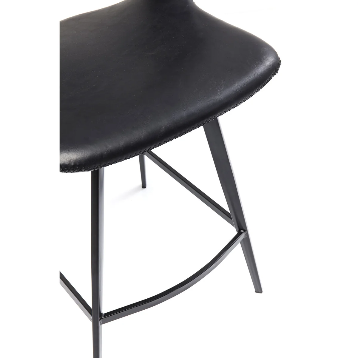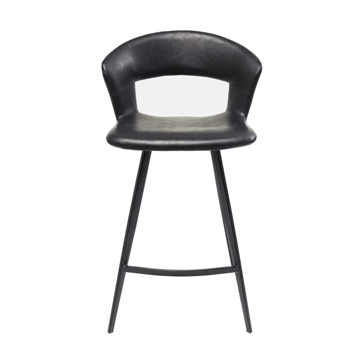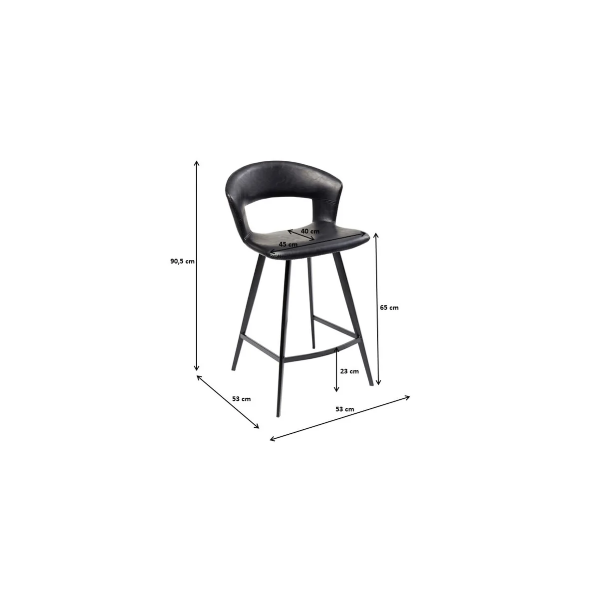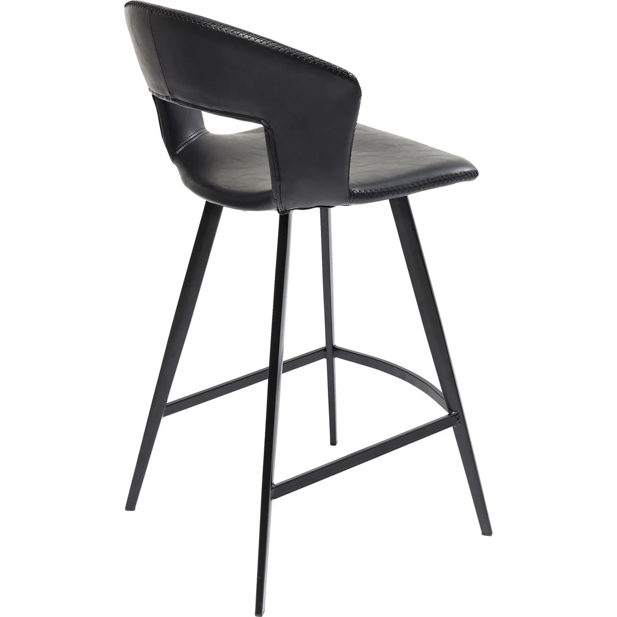 • Comfortably upholstered bar stool in a swinging retro design - all in black • The recess on the backrest and the attractive all-round cross-stitch seam are particularly eye-catching • No corners and edges and therefore particularly comfortable, whether at the kitchen counter or in the house bar • The coated cover looks like leather, but is much less complicated and particularly easy to care for • Wipe with a damp cloth