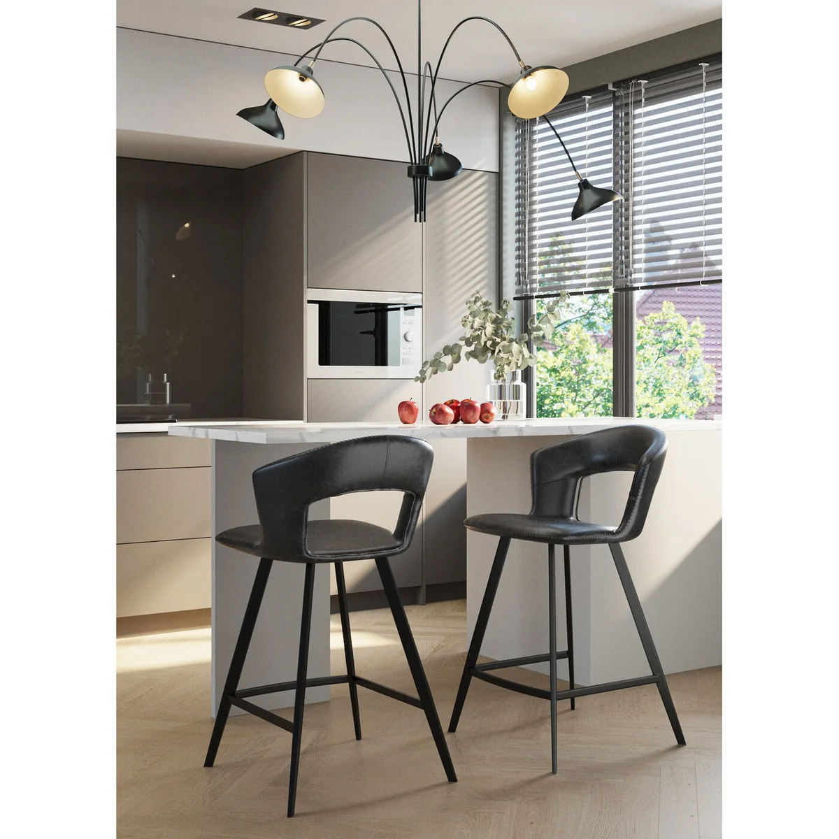 Black from the backrest to its long legs, plus the finely curved lines - that's what makes this bar stool so desirable. It looks elegant but not too distinguished, it is adaptable but not boring. We should also add how comfortable it is: the seat and backrest are finely upholstered and feature easy-care, leather-look upholstery. Also available as a chair.