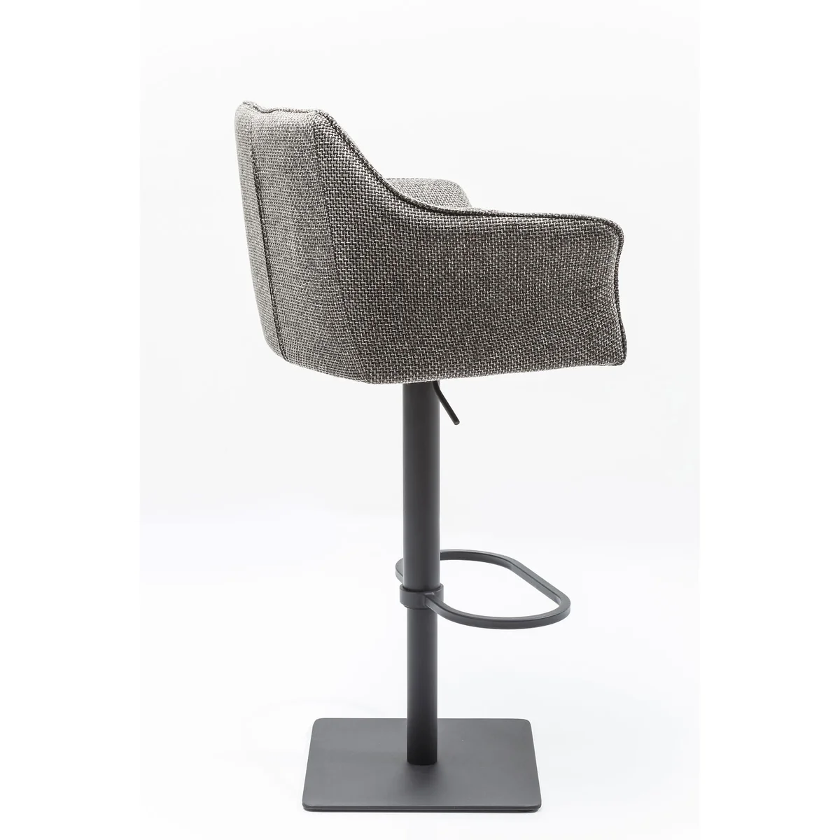 • Height-adjustable and rotating barstool with armrests in grey and a comfortable footrest • Fabulous seating comfort thanks to the lavish upholstery and the surrounding arm and backrest • An attractive bistro chair for a standing table, in the home bar and for breakfast at the kitchen counter • It’s nice that structured fabrics in the tweed style are moving back into our homes • Thinktank is also available in other colours and as a bench or armchair
