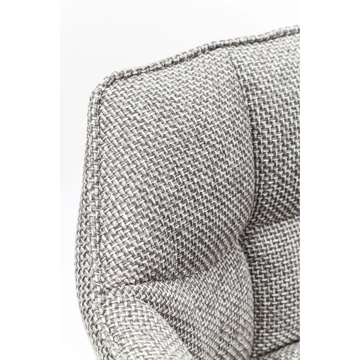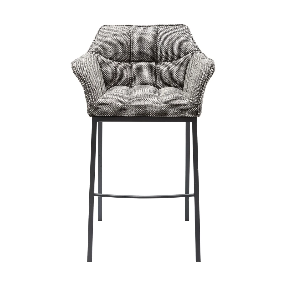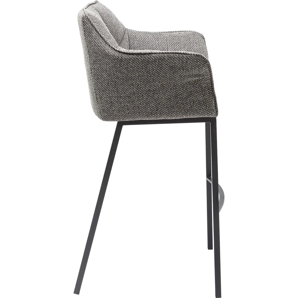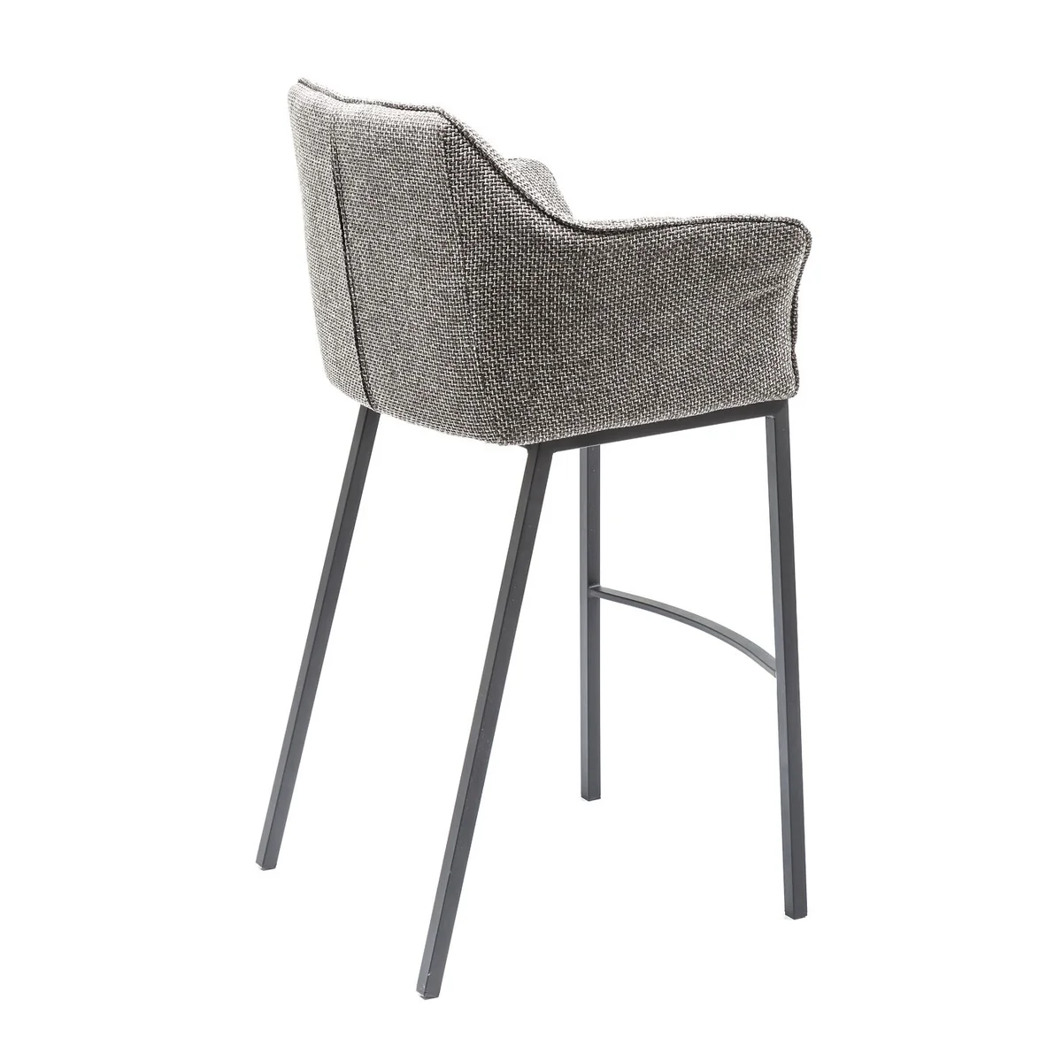 ● Barstool with armrests in grey with backrest and comfortable footrest ● Fabulous seating comfort thanks to the lavish upholstery and the surrounding arm and backrest ● An attractive bistro chair for a standing table in the espresso bar and for a muesli breakfast at the kitchen counter ● It’s nice that structured fabrics in the tweed style are moving back into our homes ● Thinktank is also available in other colours and as a bench or armchair