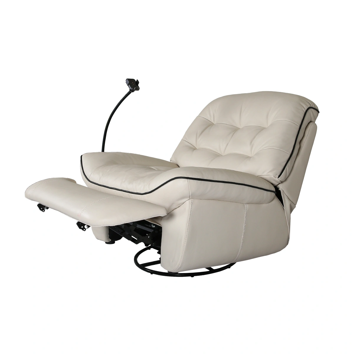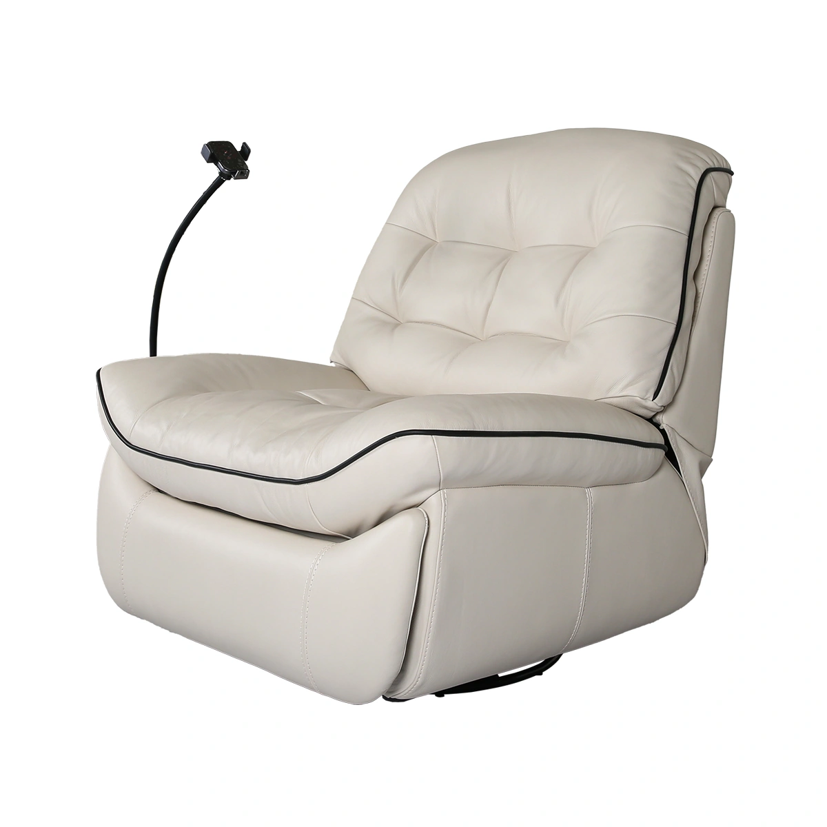 Frost Beige Leather Electric Recliner Armchair, Basel, 105x104x152 cm
