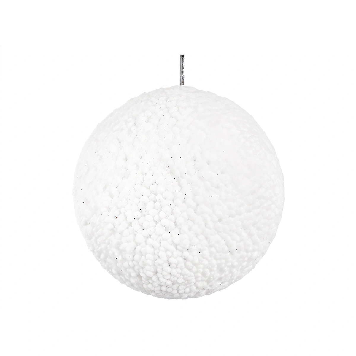 Key features include its smooth texture, beaded surface, and white hue. It measures 8CM in diameter and is constructed from 60% foam and 40% plastic, promising durability. This small-sized ornament is perfect for adding elegance and charm to your festive decorations.