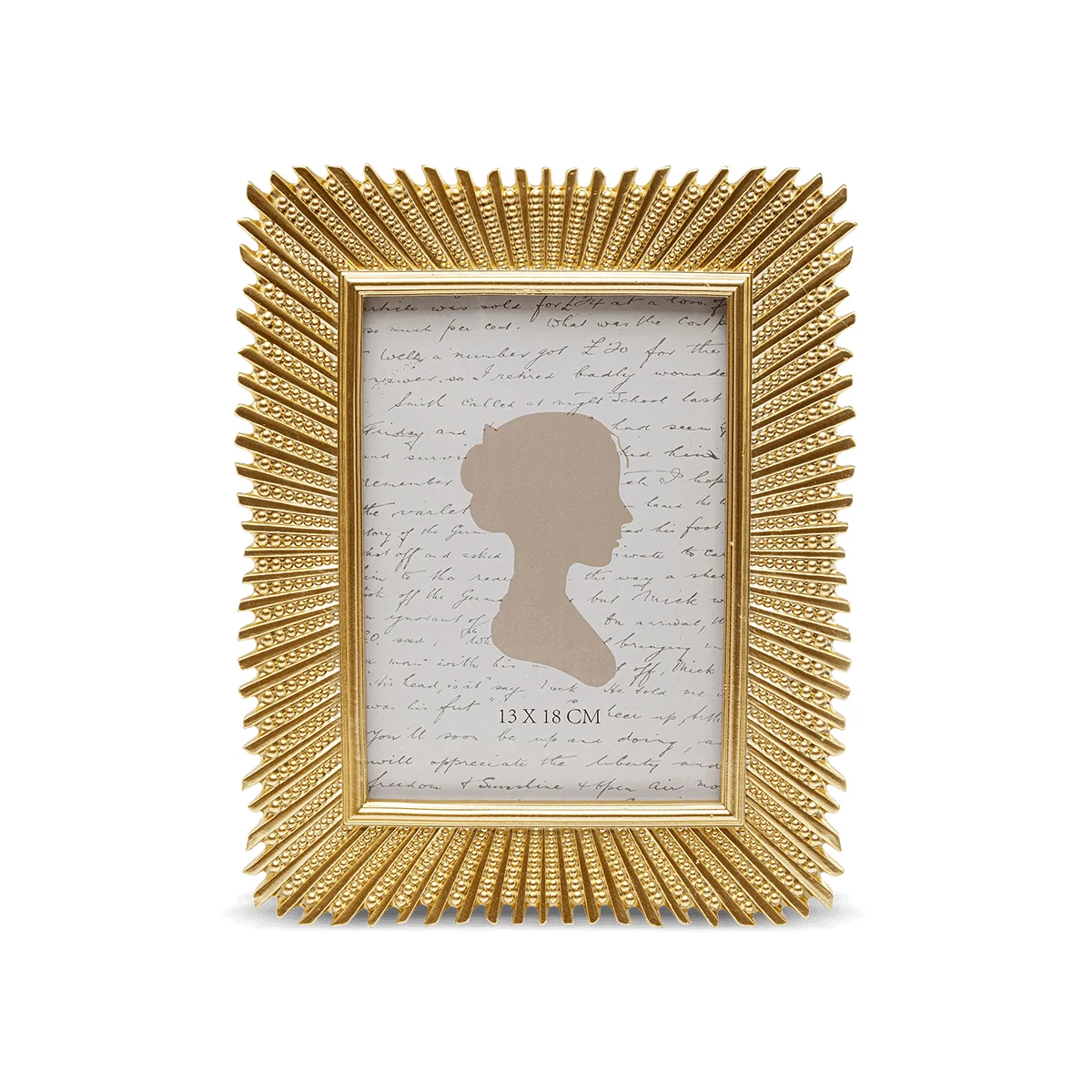 Enhance your living space with this glamorous picture frame. Perfect for both classic and glamorous home styles, it will set a sophisticated tone whether on your wall or on sideboards and chests of drawers. Its modern design and shiny gold edges will bring a touch of luxury to your home, making it a practical yet stylish element of your home decor.