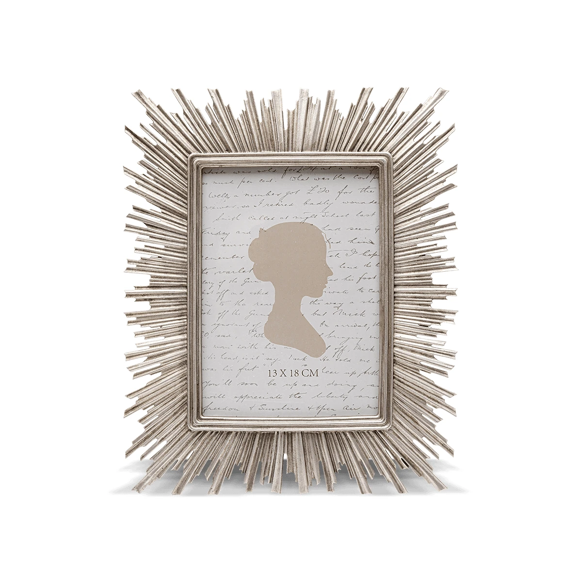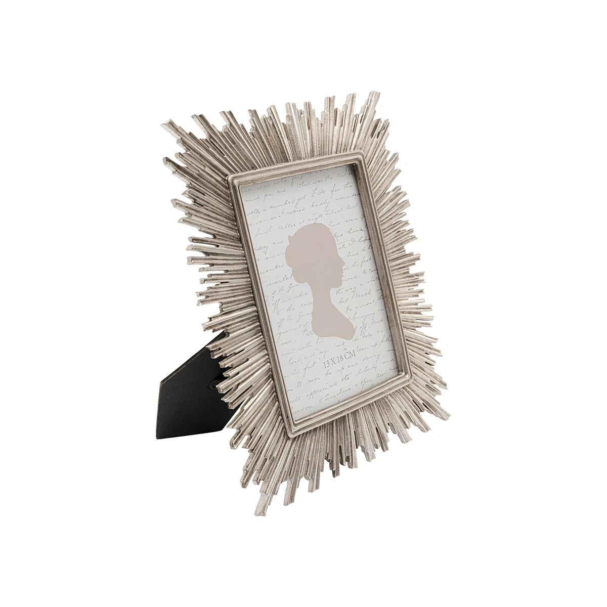 Present your favorite photos or works of art with the Beam Picture Frame in silvery polyresin. This luxuriously crafted frame with shiny silver edges adds a touch of elegance and sophistication to any home.