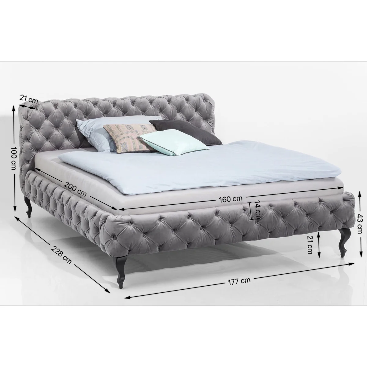 L 177 cm | W 228 cm | H 100 cm(Mattress Size 160X200 CM)