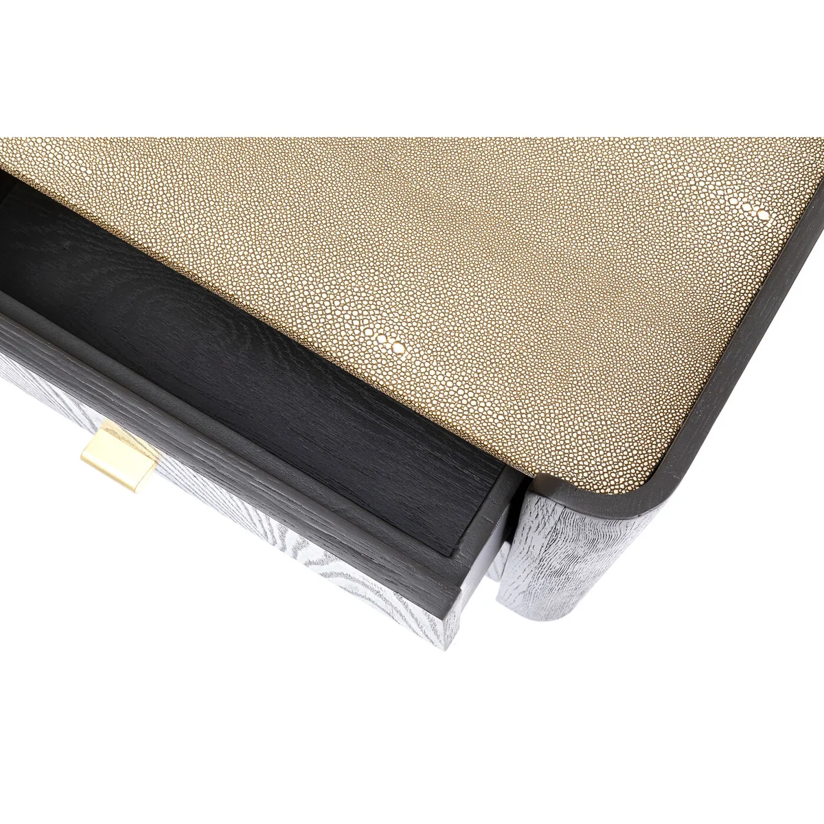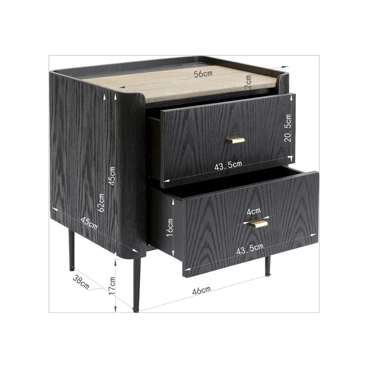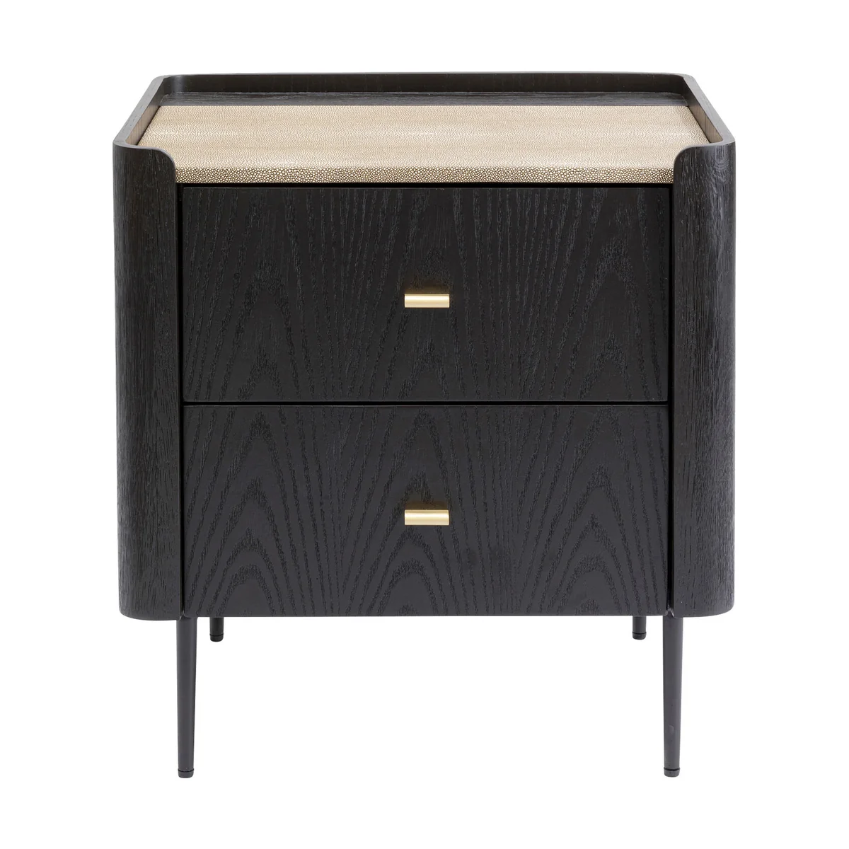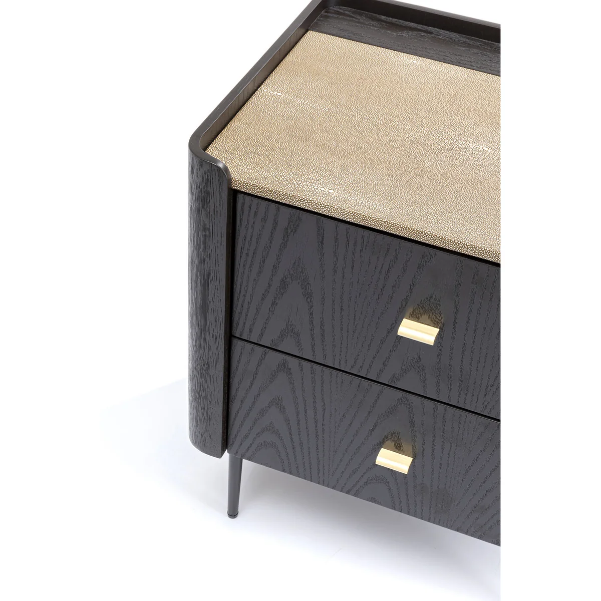 - An elegant small dresser with two spacious drawers, manufactured in the tradition of the finest Italian furniture design,The combination of black-brown solid oak and oak veneer with cream-coloured covers in a fine stingray skin look is full of character - This designer furniture also has inner values: the drawers are luxuriously finished and offer storage space - Perfect as a bedside table in the bedroom, especially with the matching Milano bed or for storing bits and pieces under the mirror in the hall - Compact but impressive thanks to the soft-close function of the drawers and height-adjustable feet
